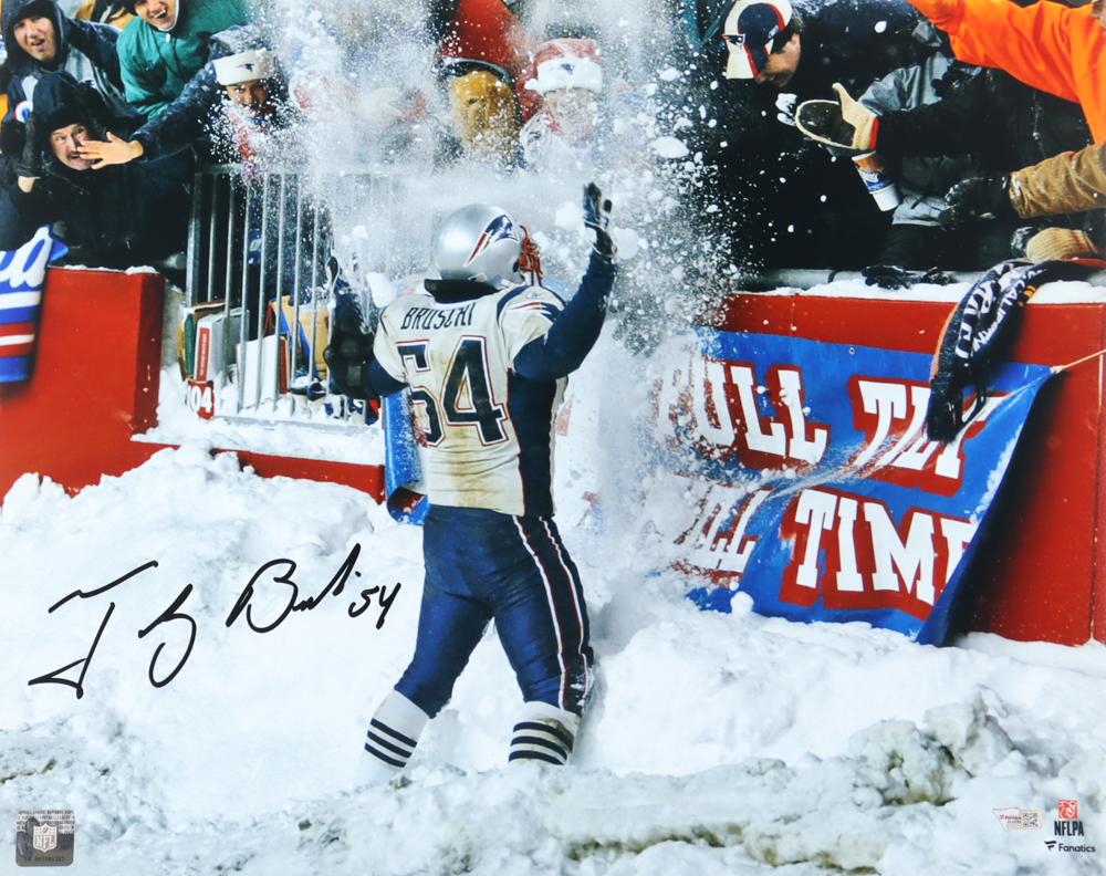 Photo measures 16" x 20" in size and has been hand-signed by Tedy Bruschi (New England Patriots).