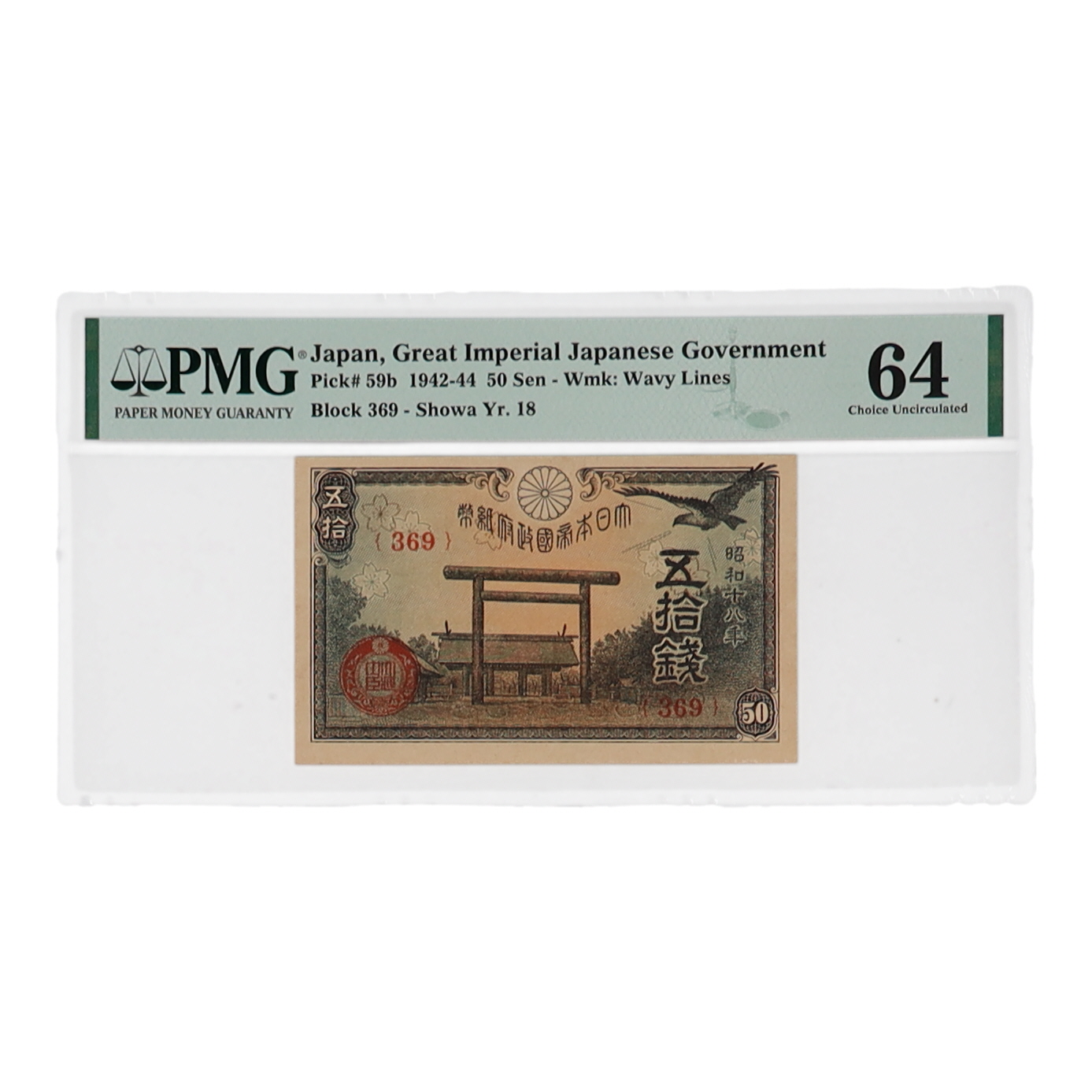 1942-44 Japan, Great Imperial Japanese Government - 50 Sen (PMG Choice Unc 64)