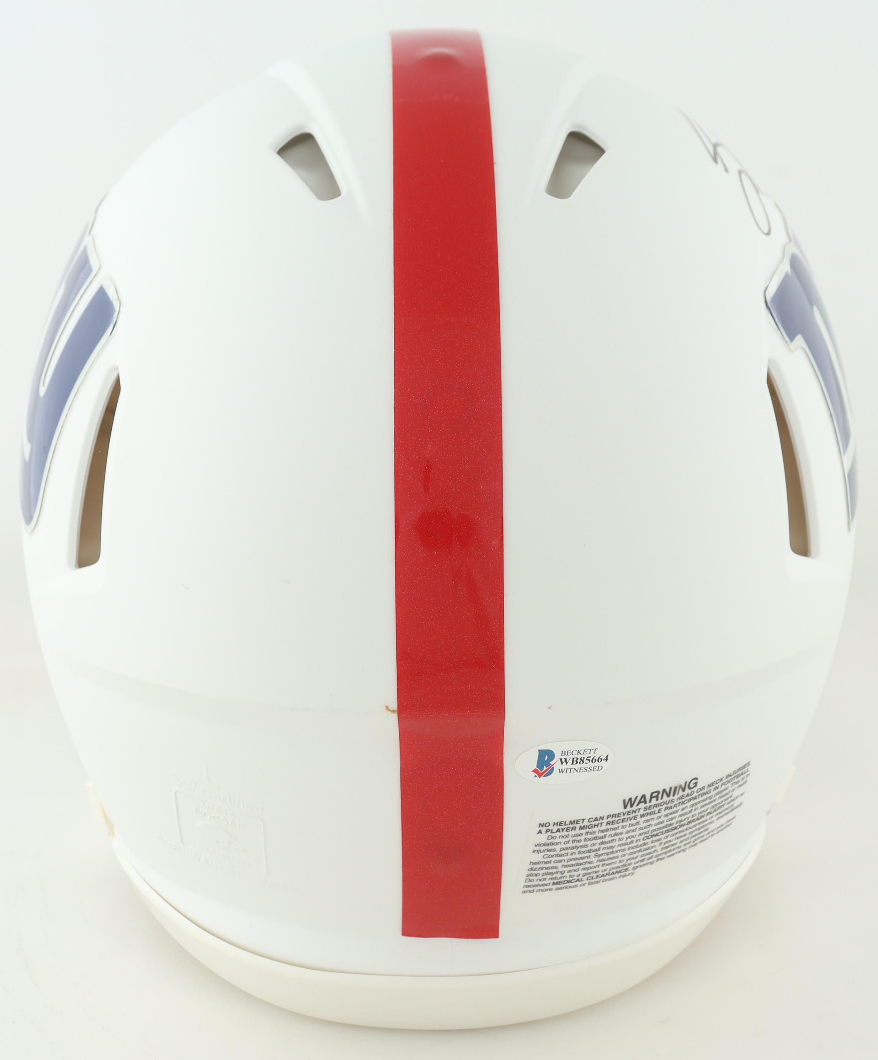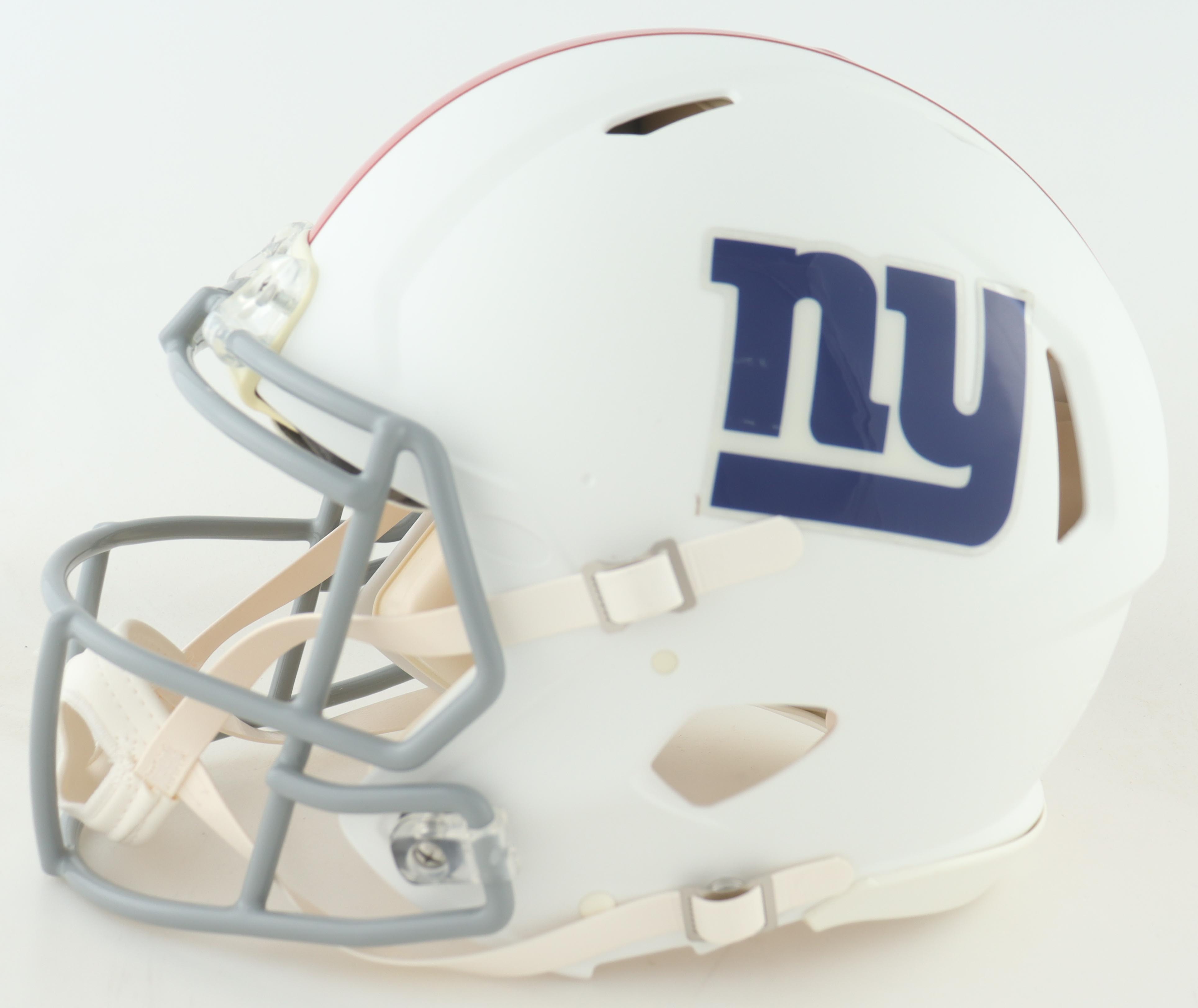 Riddell New York Giants full-size authentic on-field Speed helmet. Hand-signed and inscribed by Saquon Barkley.