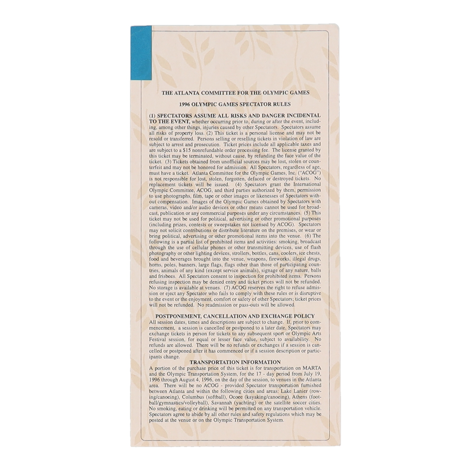 1996 Olympics Opening Day Ceremony Original Ticket