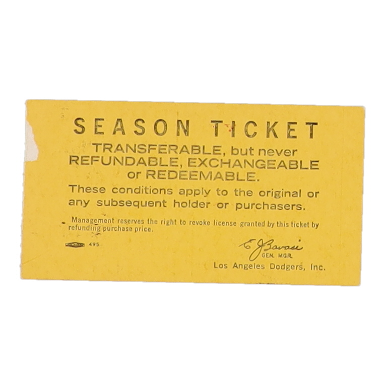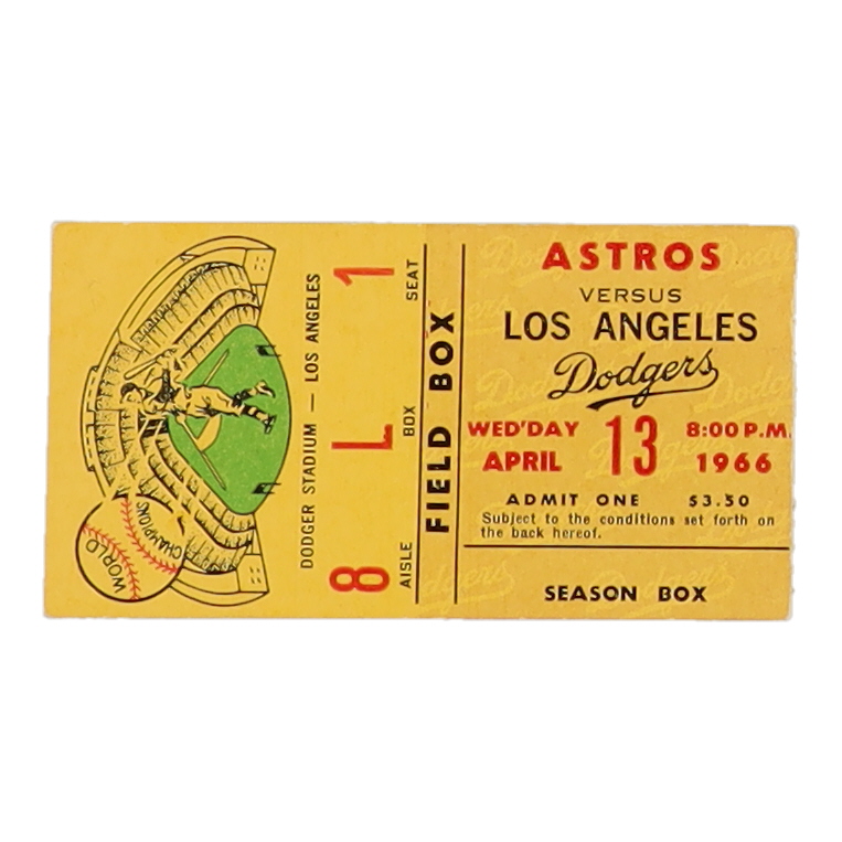 1966 Dodgers vs. Astros Vintage Dodger Stadium Ticket