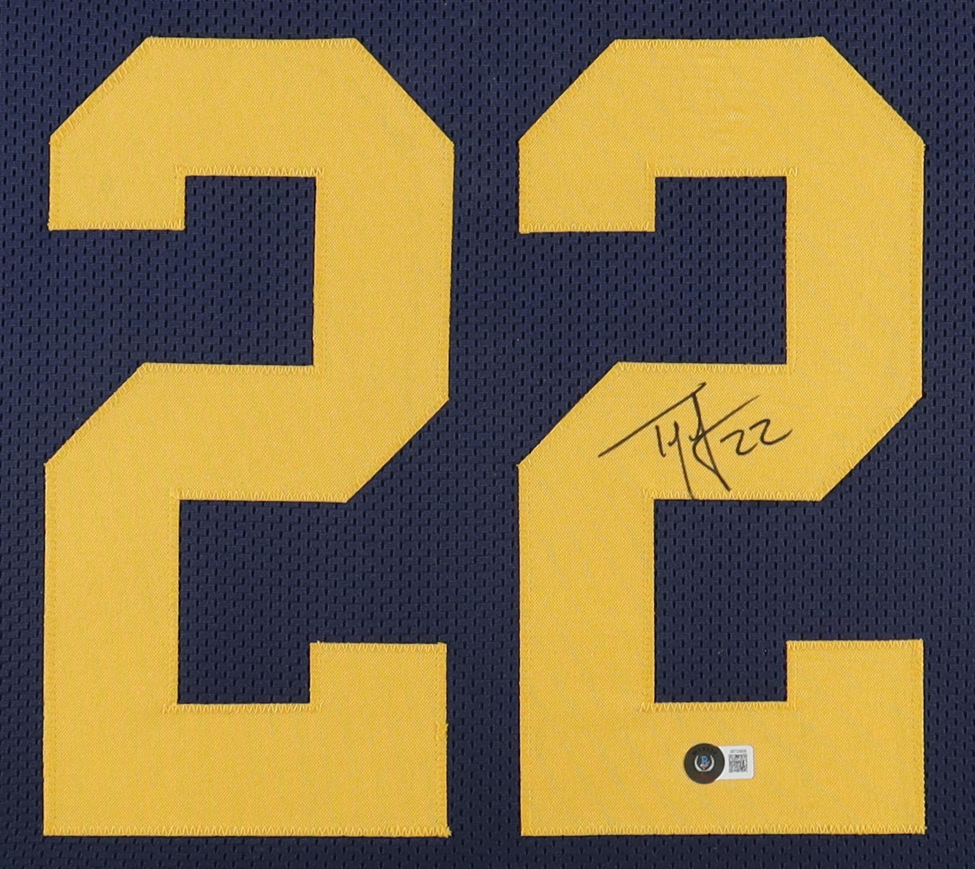 Custom frame measures 35" x 43" in size and features a jersey hand-signed by Ty Law. Please note that the 8" x 10" photos may be in different order.