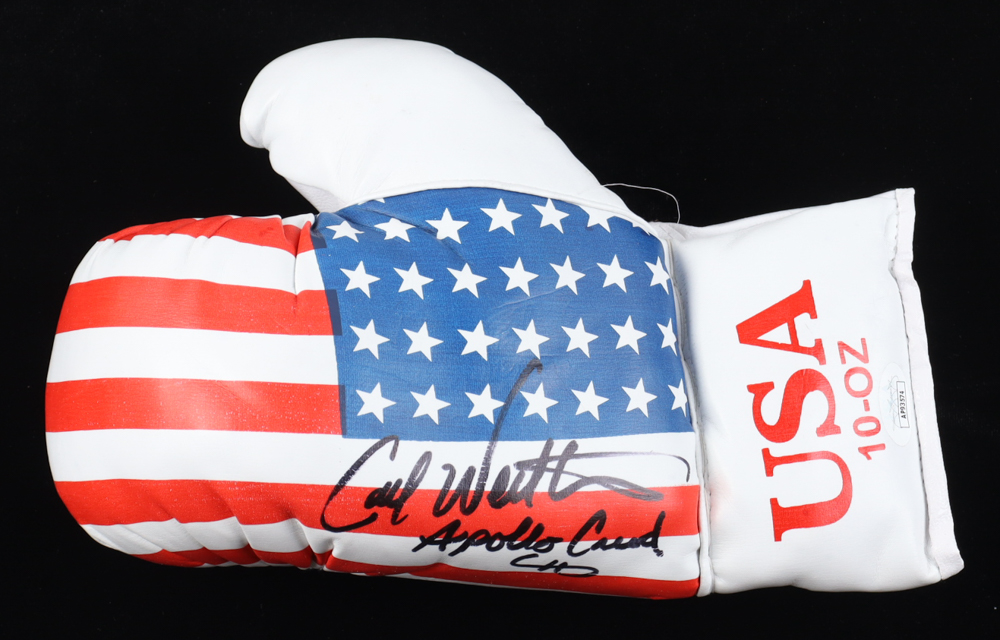 U.S.A boxing glove has been hand-signed and inscribed by Carl Weathers (Apollo Creed).