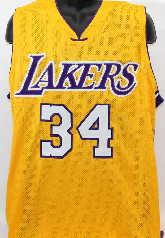 Custom on-court styler jersey. Everything is sewn on, size XL. Jersey has been hand-signed in black felt-tip pen by Shaquille O'Neal (HOF).