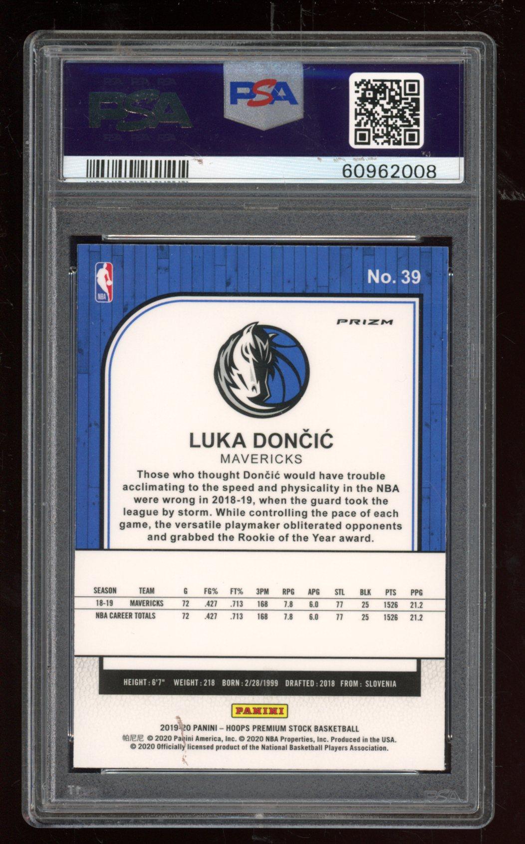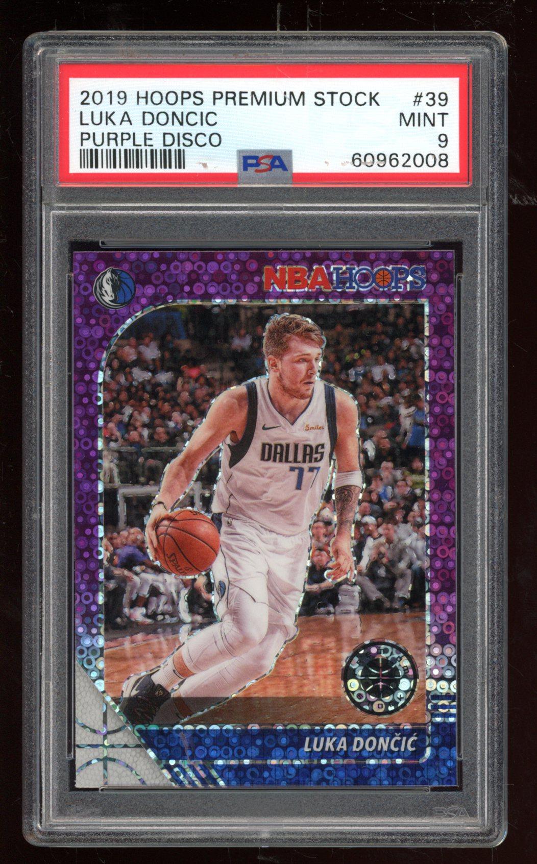 Luka Doncic 2019-20 Hoops Premium Stock Prizms Purple Disco #39 (PSA 9)