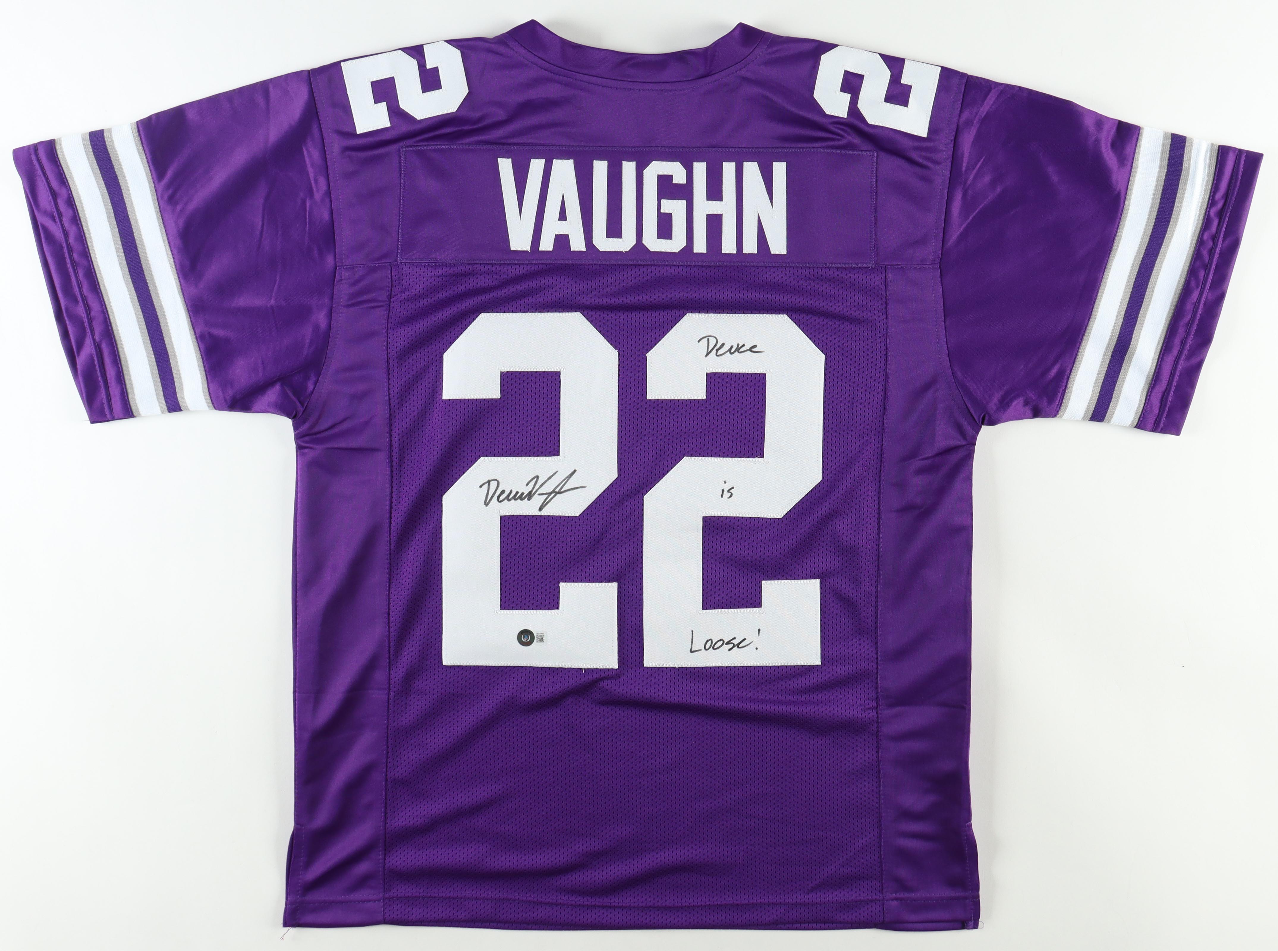 Custom jersey. Everything is sewn on, size XL. Hand-signed and inscribed by Deuce Vaughn.