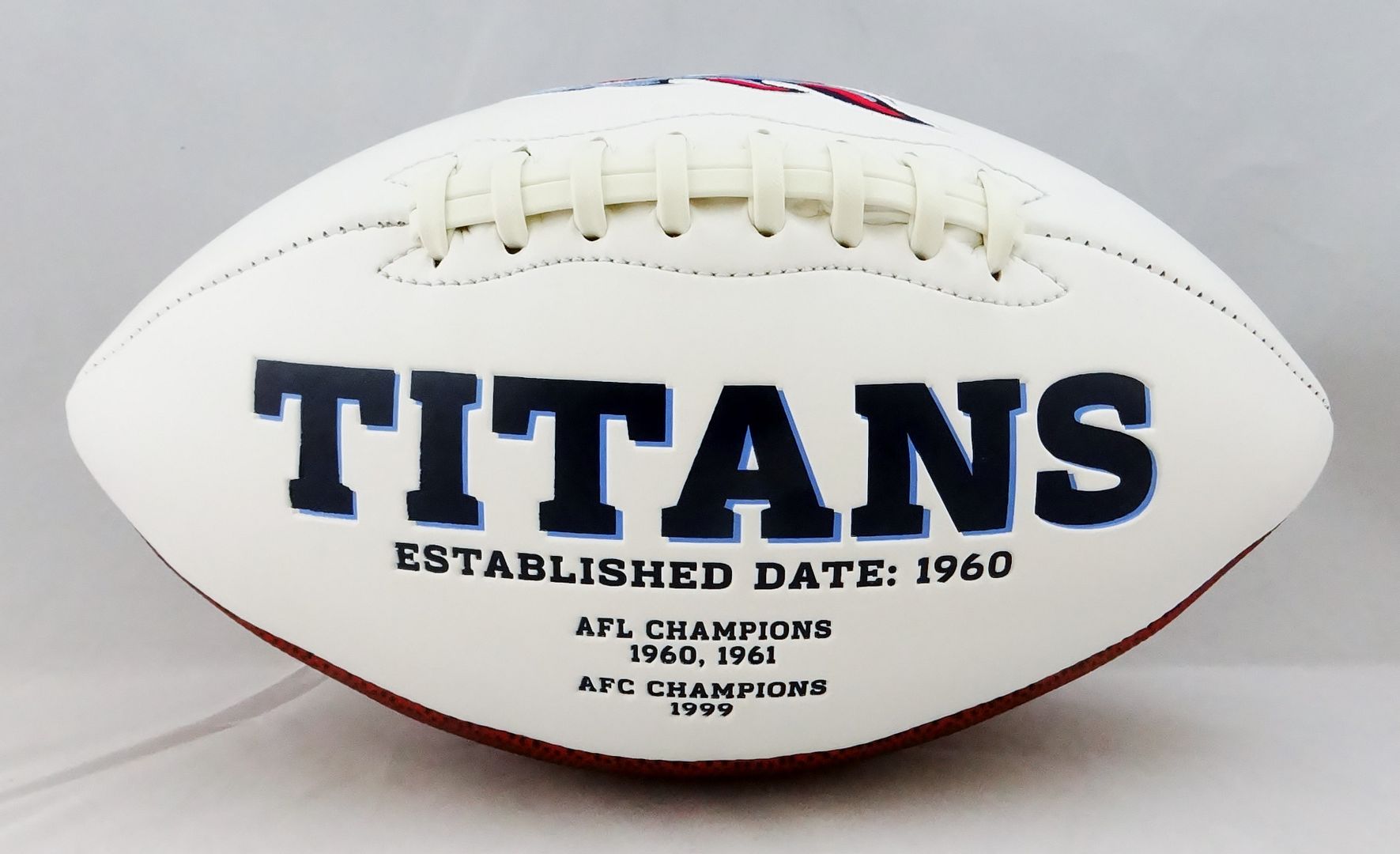 Tennessee Titans logo football has been hand-signed by Chris Johnson.