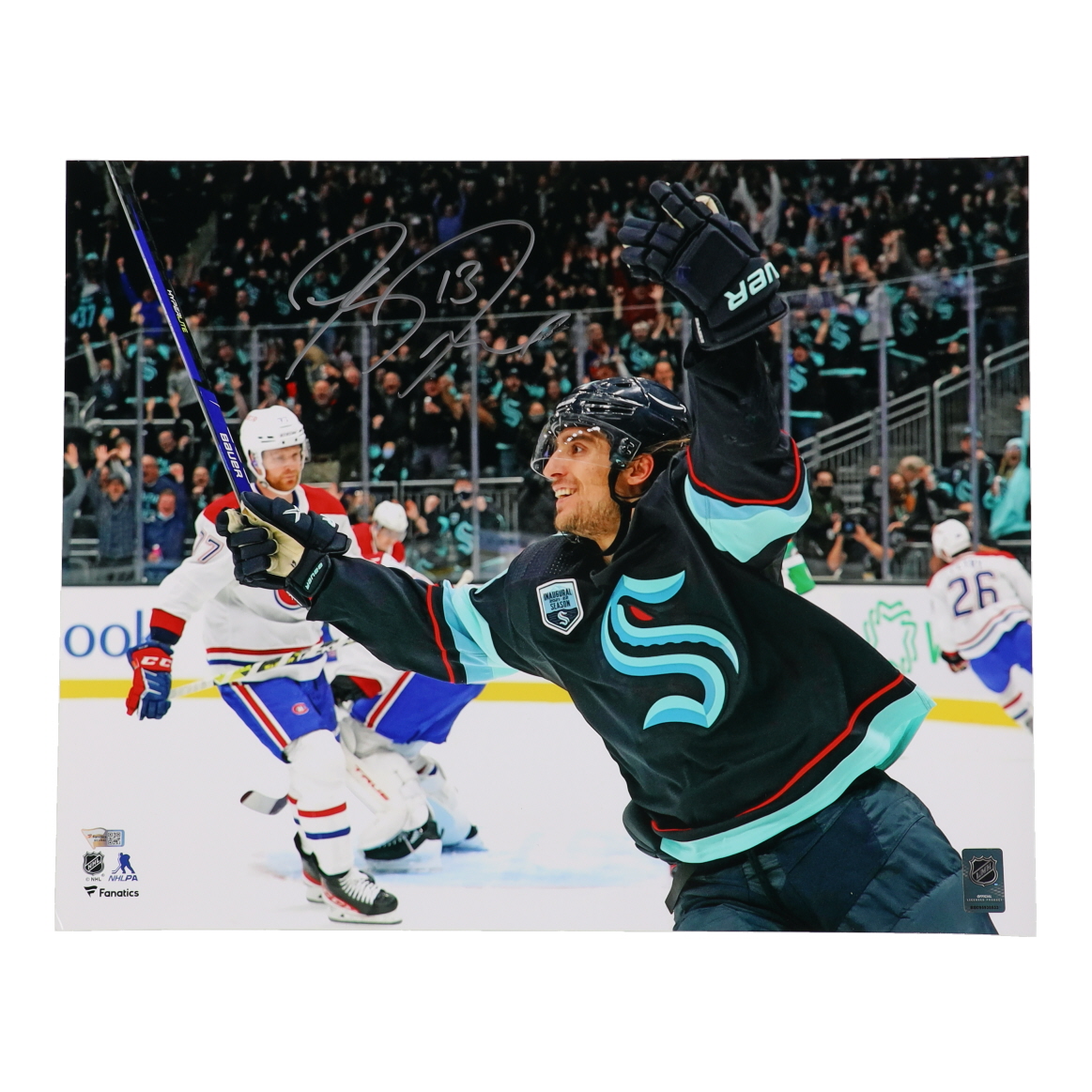 Photo measures 16" x 20" in size and has been hand-signed by Brandon Tanev (Seattle Kraken).