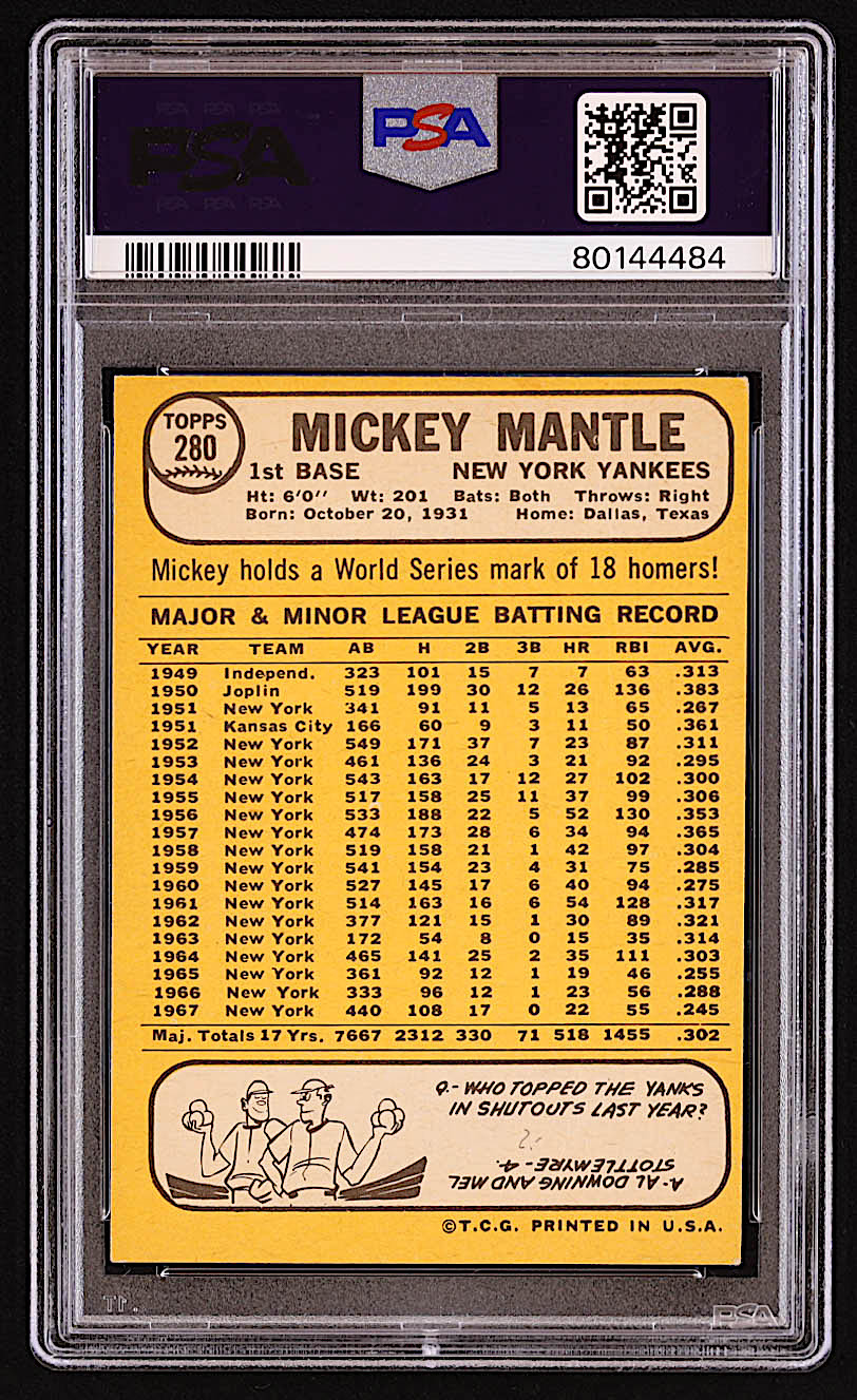 Mickey Mantle 1968 Topps #280 (PSA 1.5)