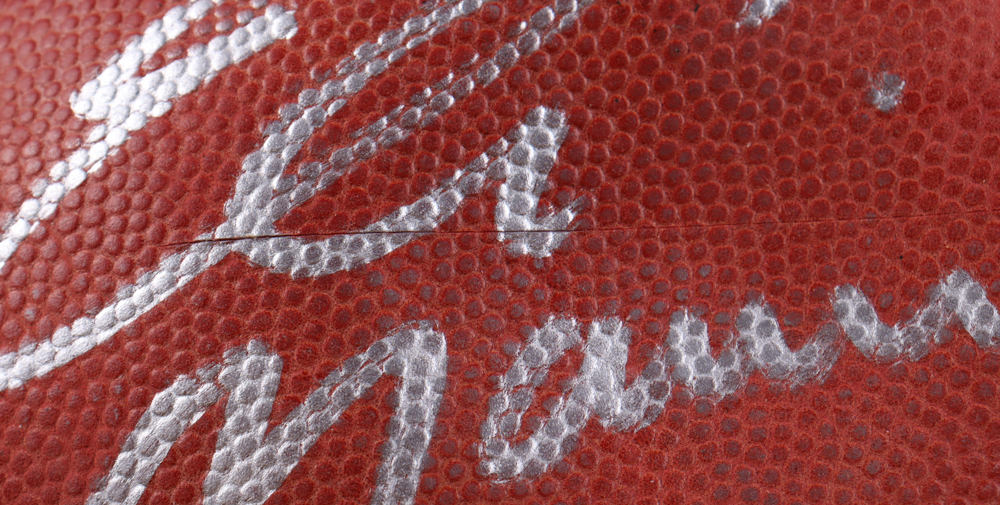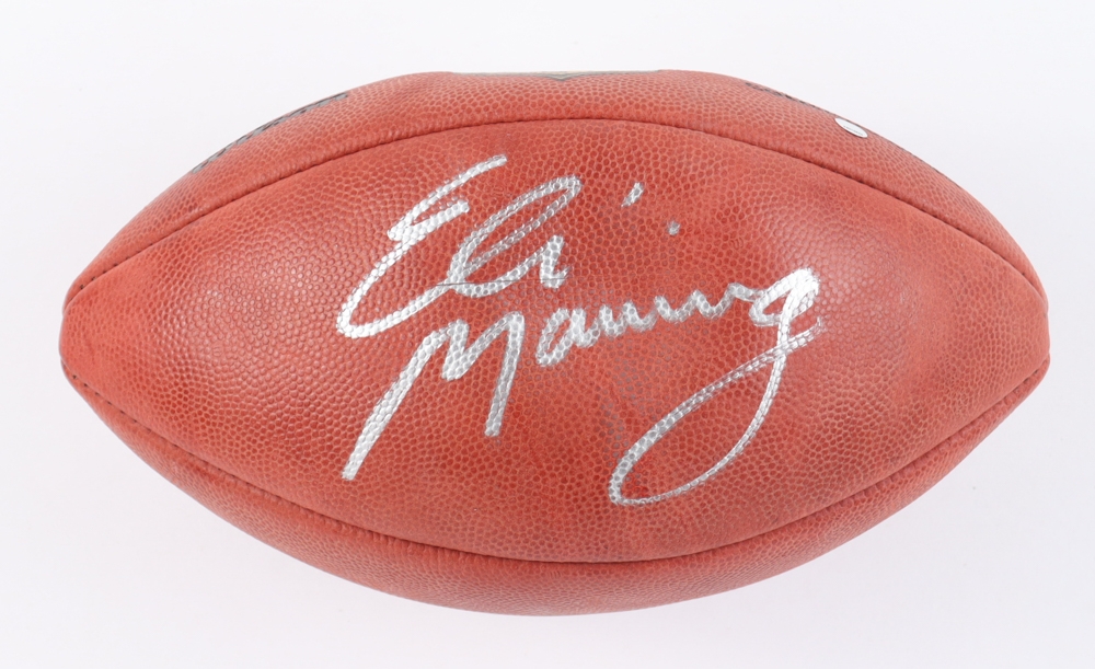 Wilson "The Duke" NFL football has been hand-signed by Eli Manning (New York Giants). Please note, there is a cut through the "Eli" in the signature, and the ball does not hold air.