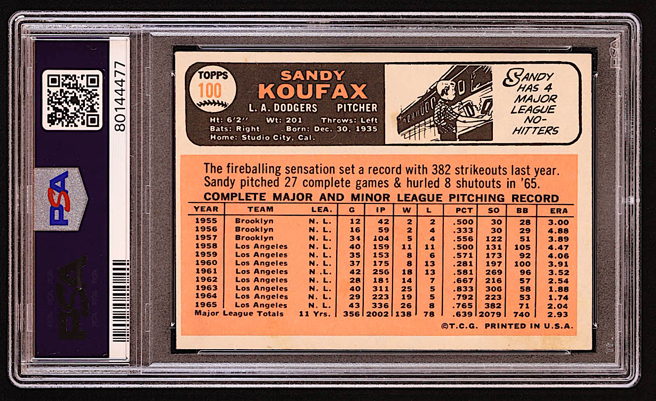 Sandy Koufax 1966 Topps #100 (PSA 1.5)