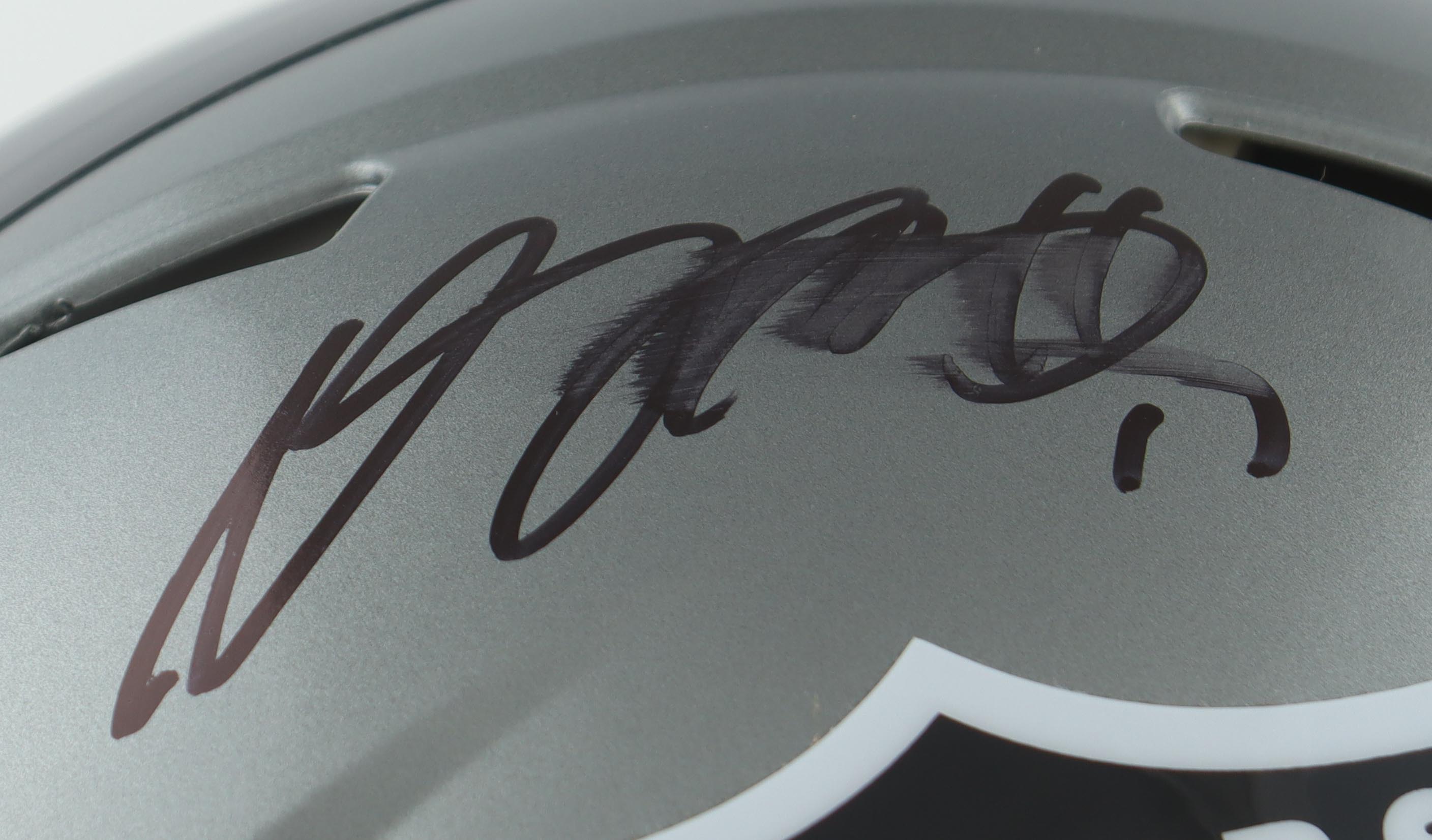 Riddell Las Vegas Raiders full-size authentic on-field speed helmet. Hand-signed by Davante Adams. Please note, the autograph is smudged.