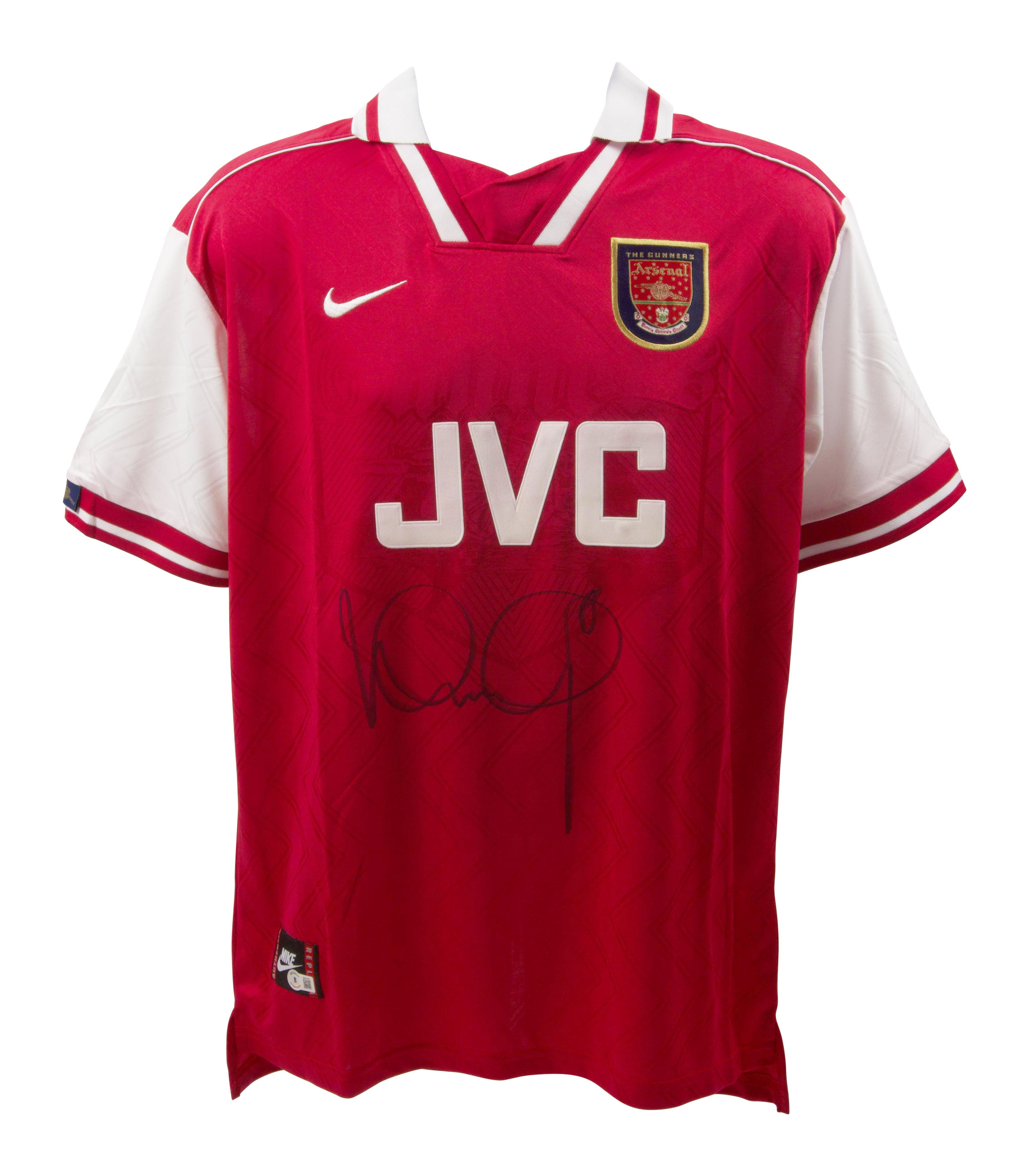 Nike style jersey with everything pressed on, size L. Hand-signed by Ian Wright.