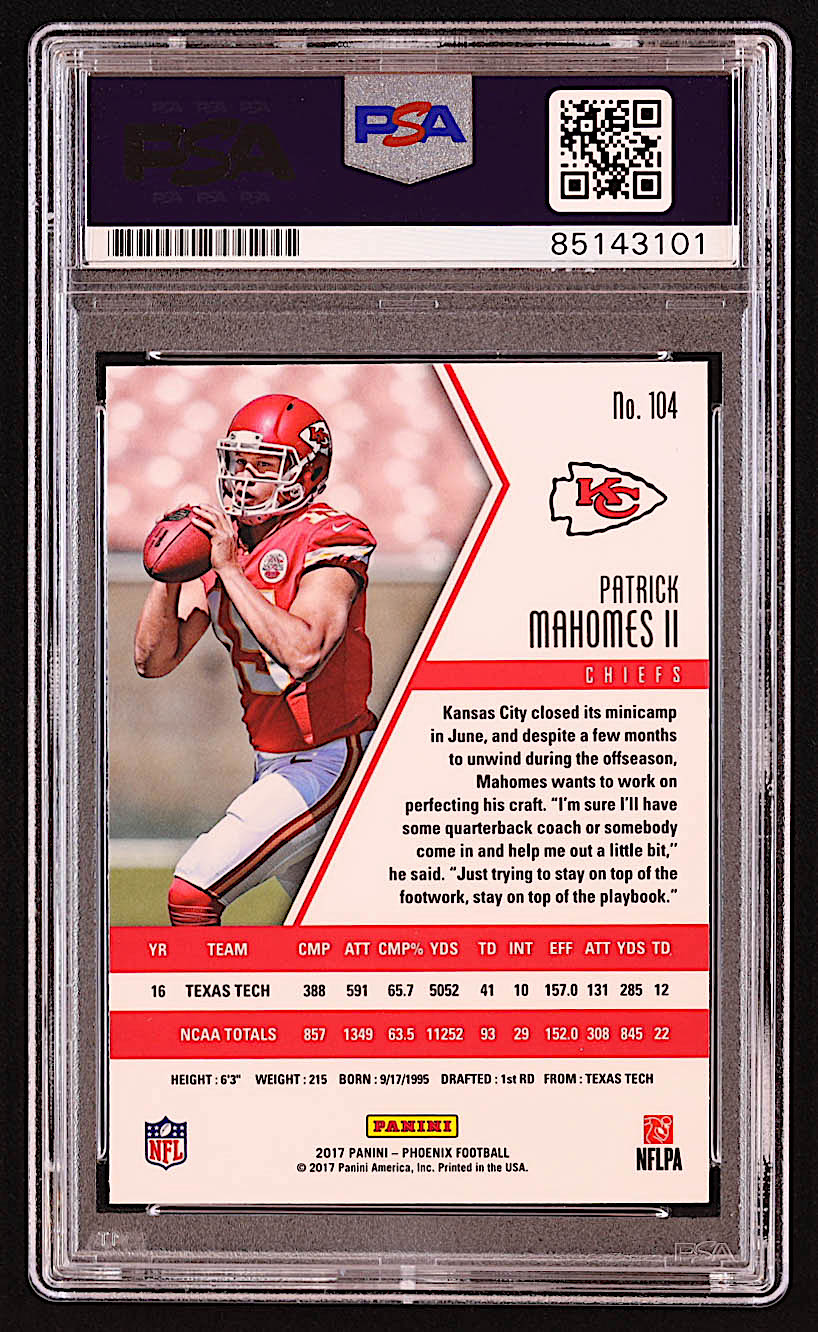 Patrick Mahomes II Signed 2017 Panini Phoenix #104 RC (PSA | Auto 9)