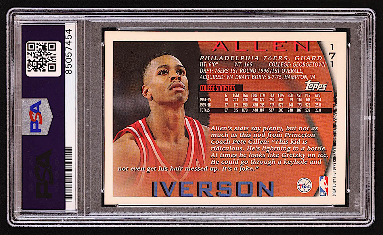 Allen Iverson Signed 1996-97 Topps #171 RC (PSA | Auto 10)