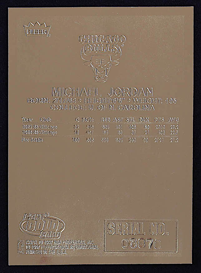 Michael Jordan 1997 Fleer Premier Signature Series Holo Prism Refractor 23Kt Gold Card