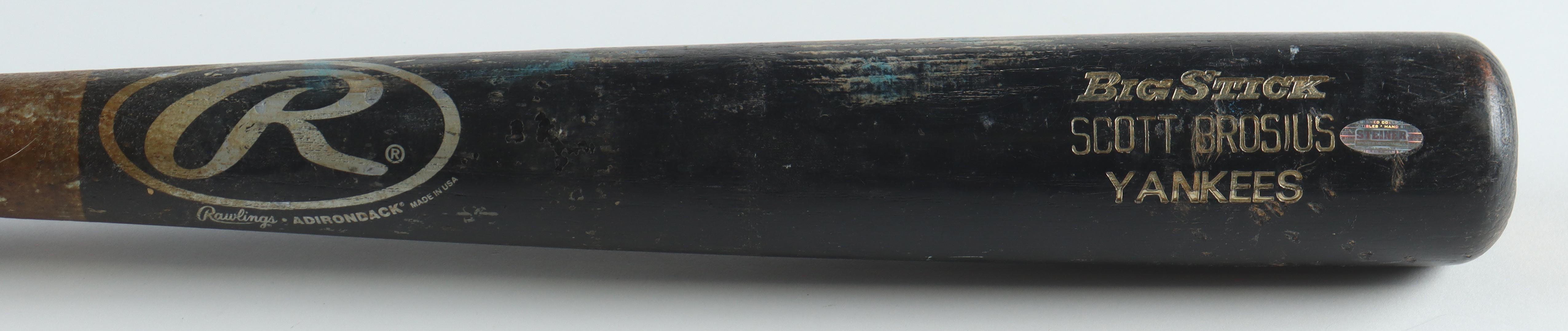 Rawlings Big Stick Scott Brosius (New York Yankees) player model baseball bat. Please note, the bat has been game-used and cracked by an unknown player and is not signed.