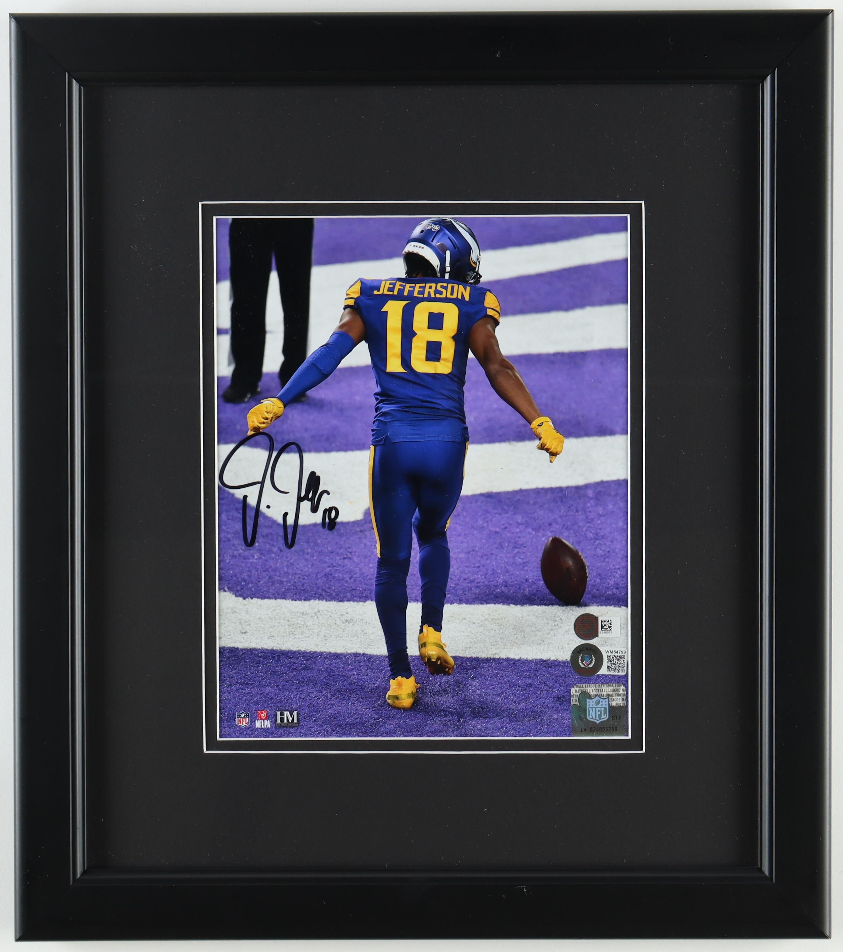 Justin Jefferson Signed Vikings Custom Framed Photo Display (Beckett & SportsMemorabilia)