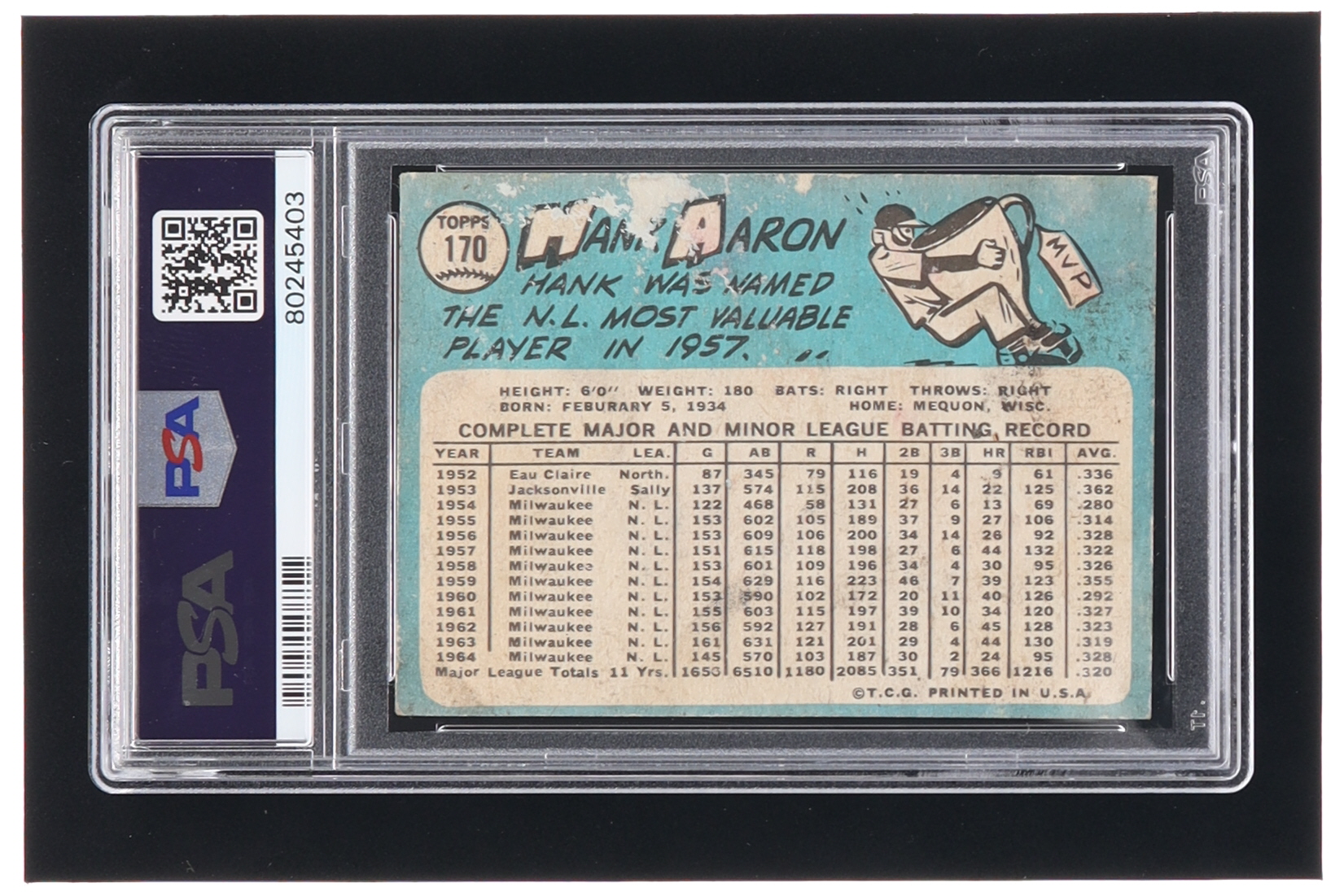 Hank Aaron 1965 Topps #170 (PSA)
