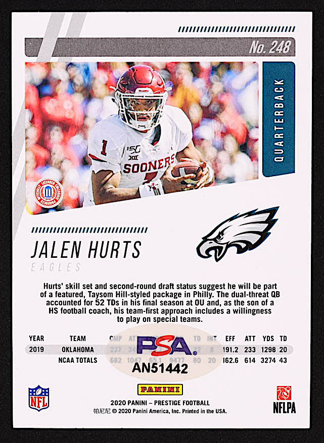 Jalen Hurts Signed 2020 Prestige #248 RC (PSA)