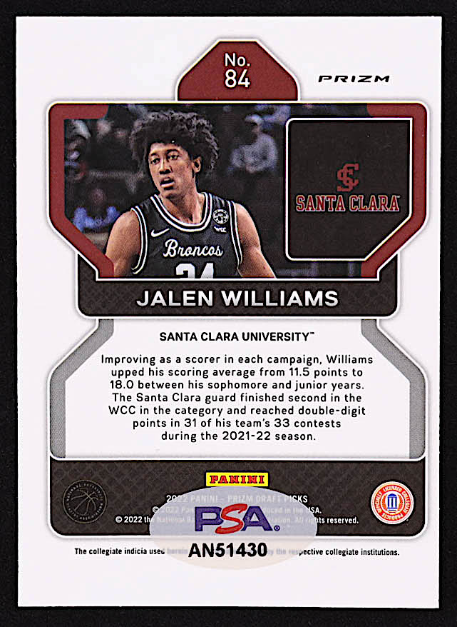 Card has been hand-signed by Jalen Williams (Santa Clara Broncos). Please see photos for more details regarding the condition of the card.