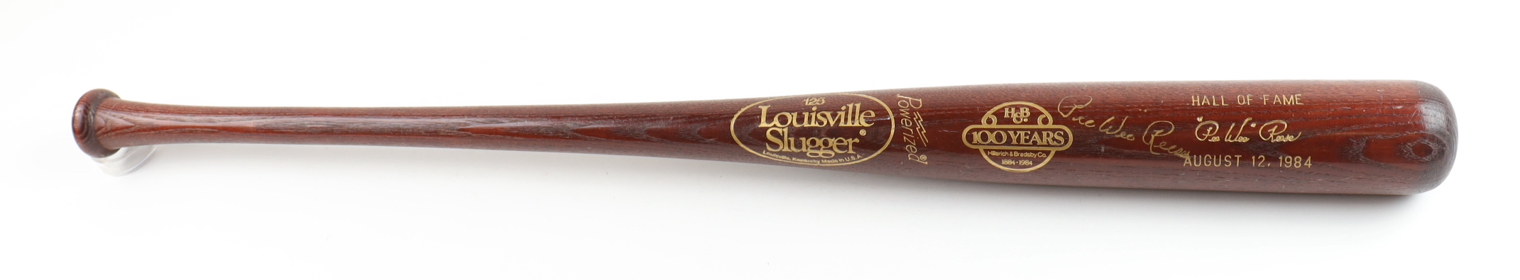 Louisville Slugger Hillerich & Bradsby 100 Years Player Model baseball bat. Hand signed by Pee Wee Reese (D. 1999, Los Angeles Dodgers HOF).