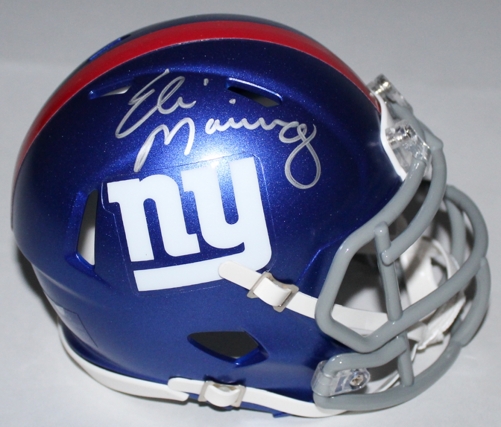 New York Giants speed mini-helmet hand-signed in silver paint pen by Eli Manning (Giants).
