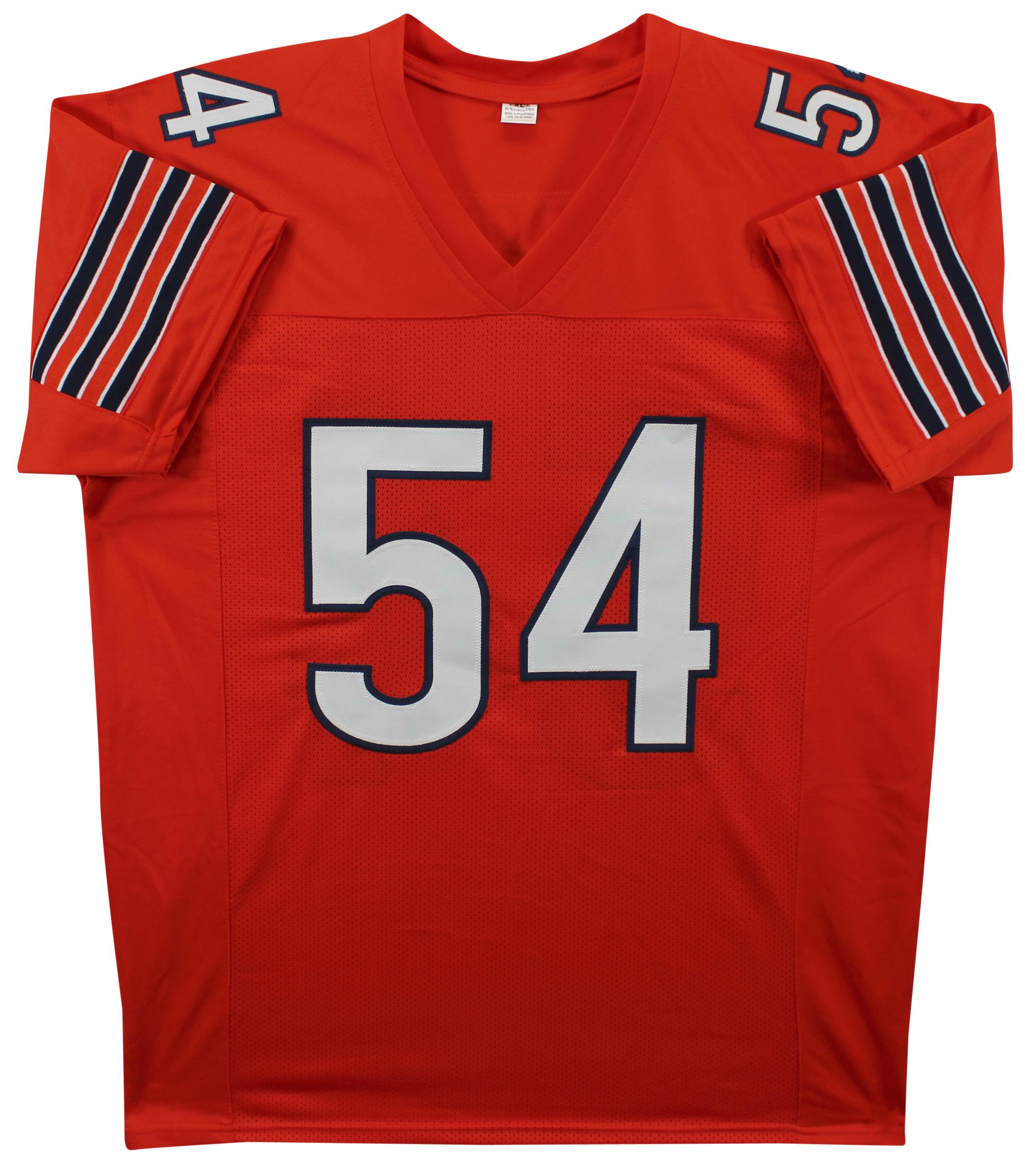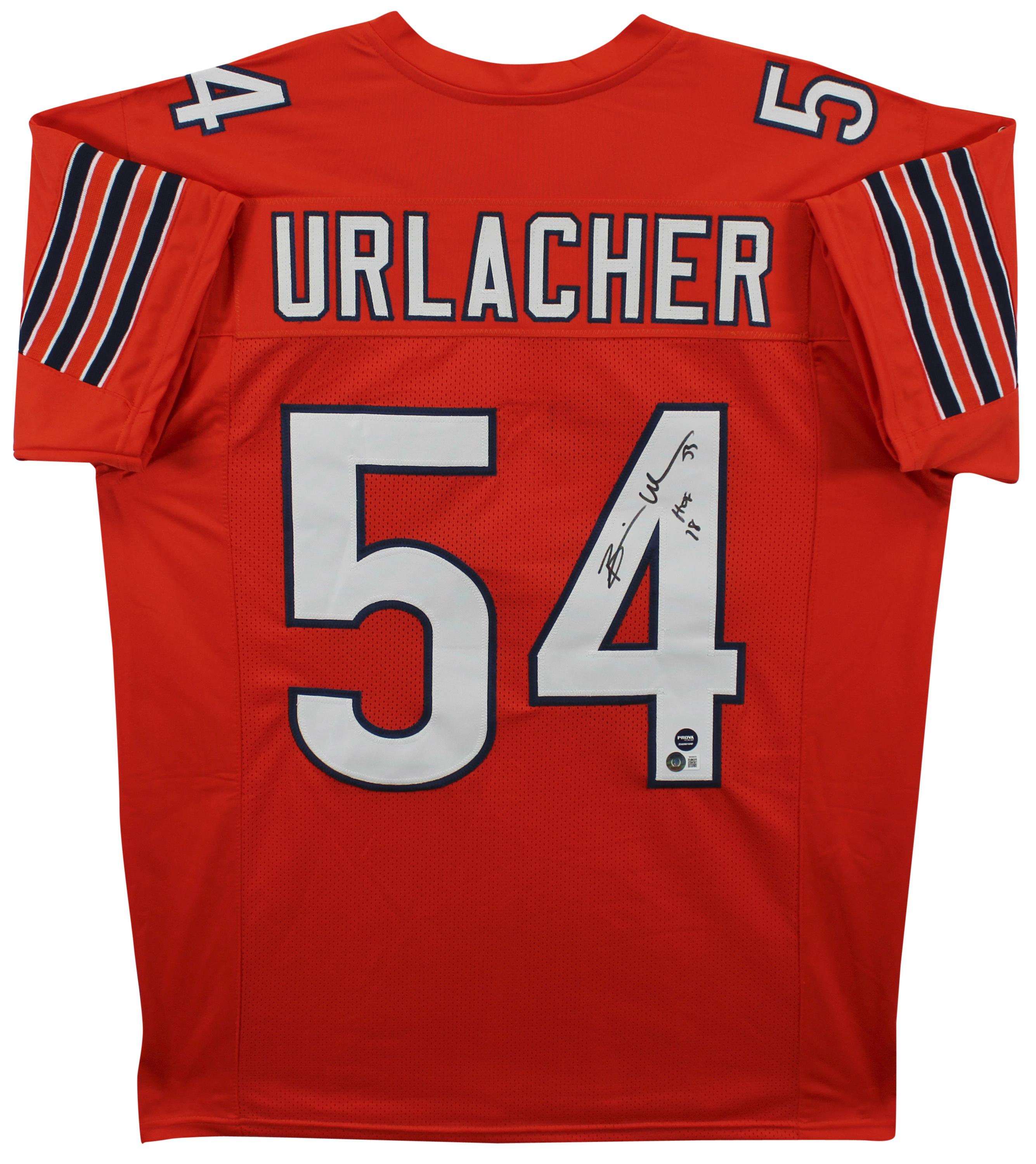 Custom jersey with everything sewn on, size XL. Hand-signed and inscribed by Brian Urlacher (HOF).