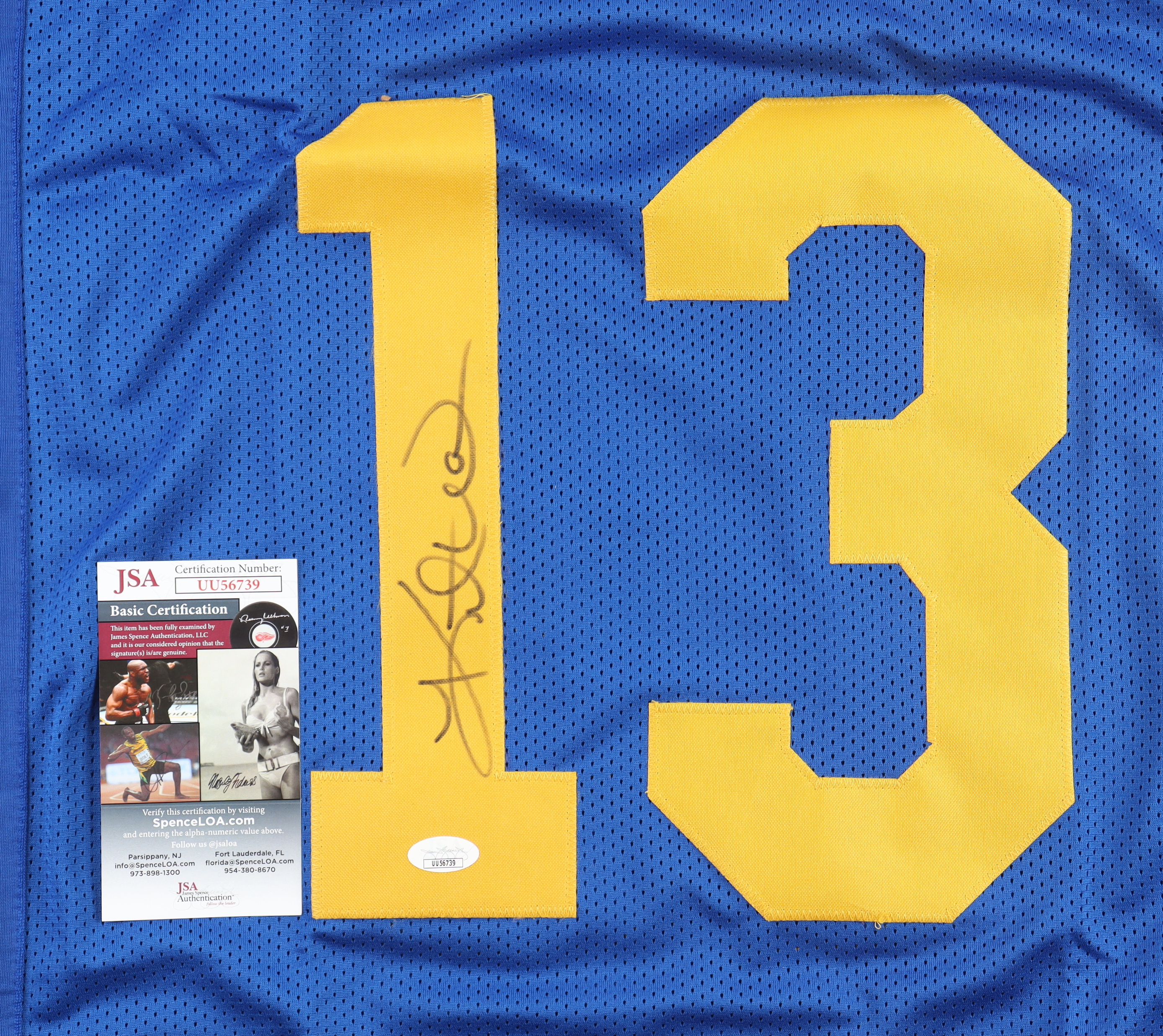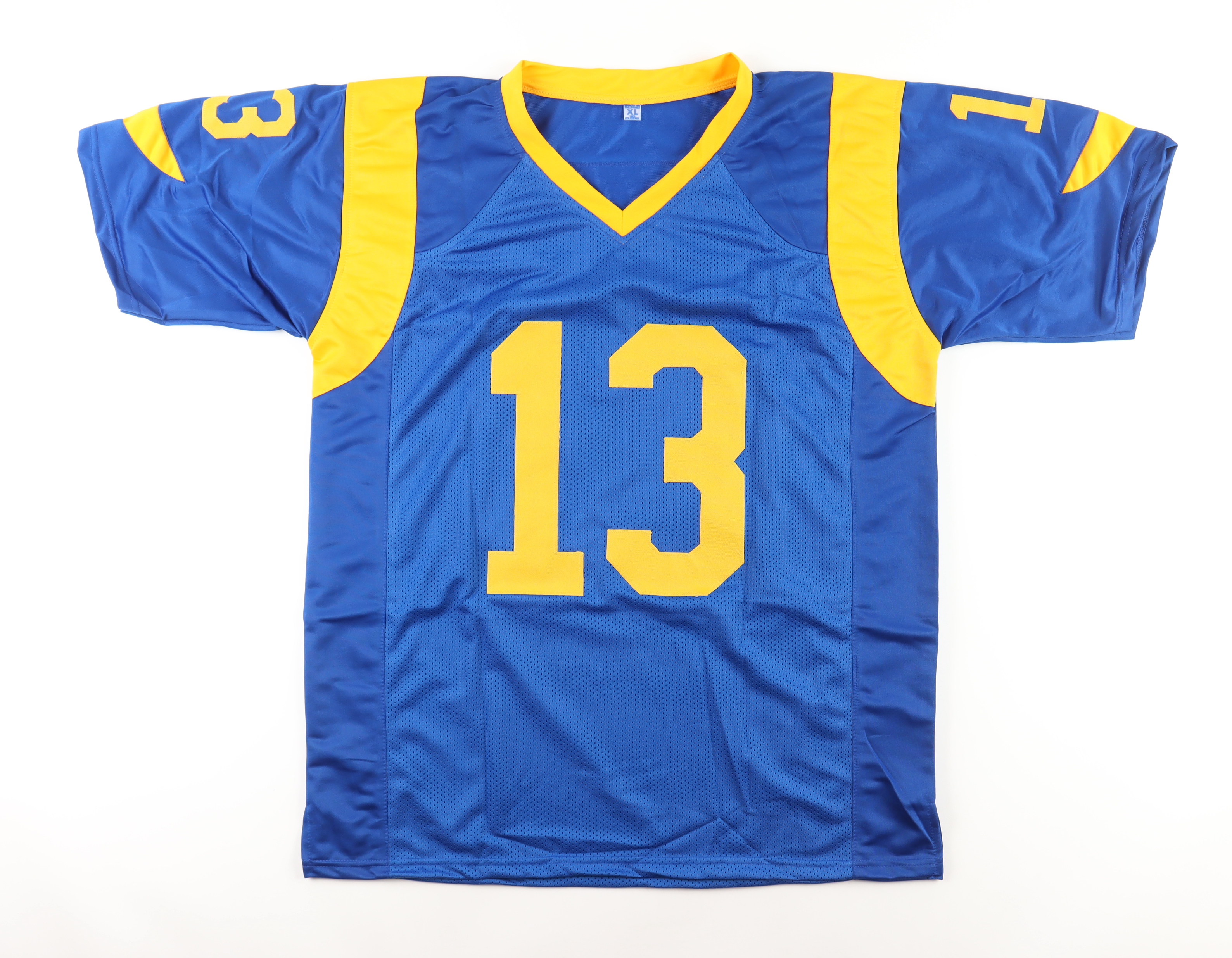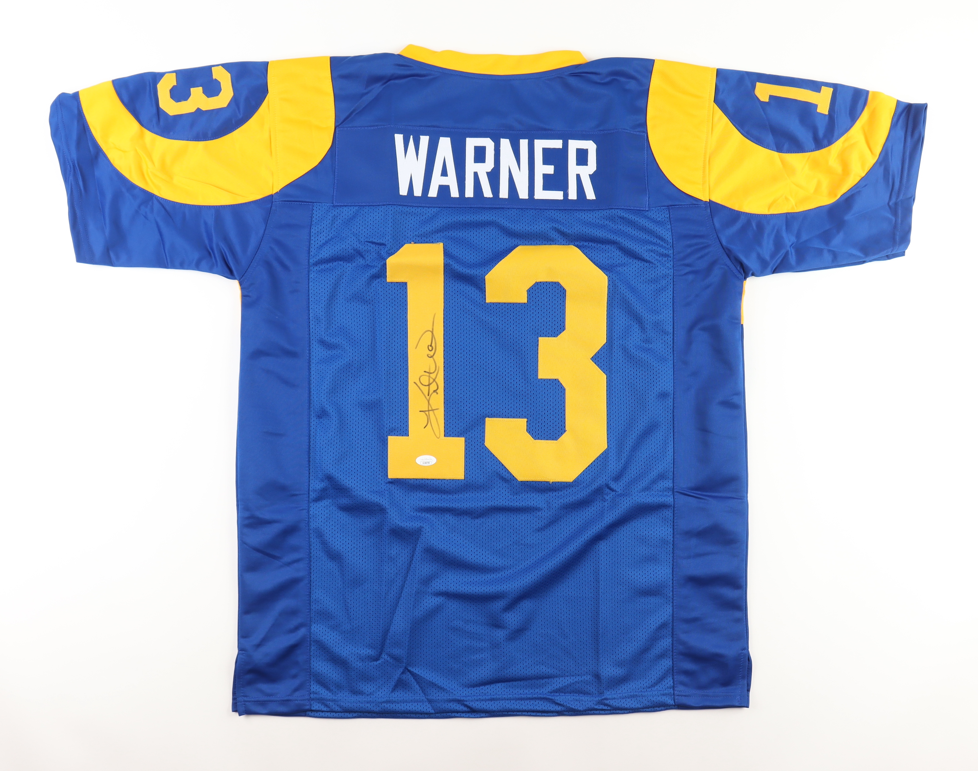 Custom jersey with everything sewn on, size XL. Hand-signed by Kurt Warner (HOF).