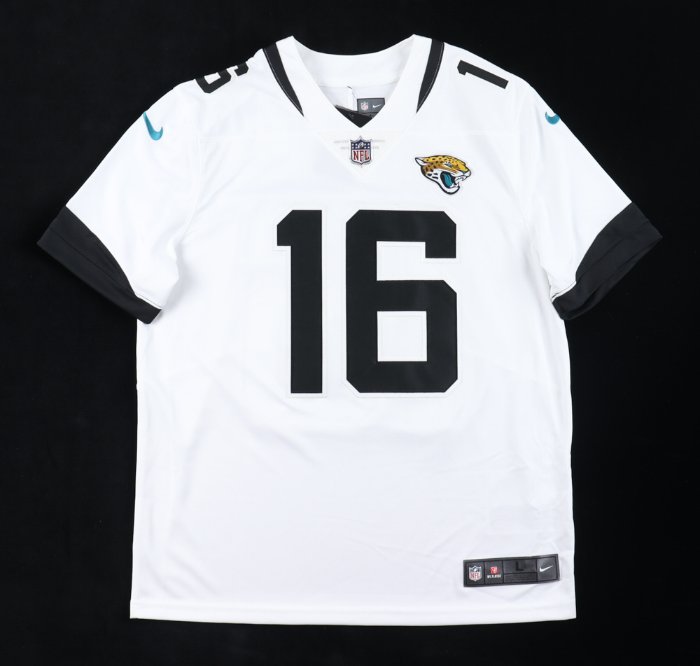 Nike jersey with everything sewn on, size L. Hand-signed by Trevor Lawrence (Jacksonville Jaguars).