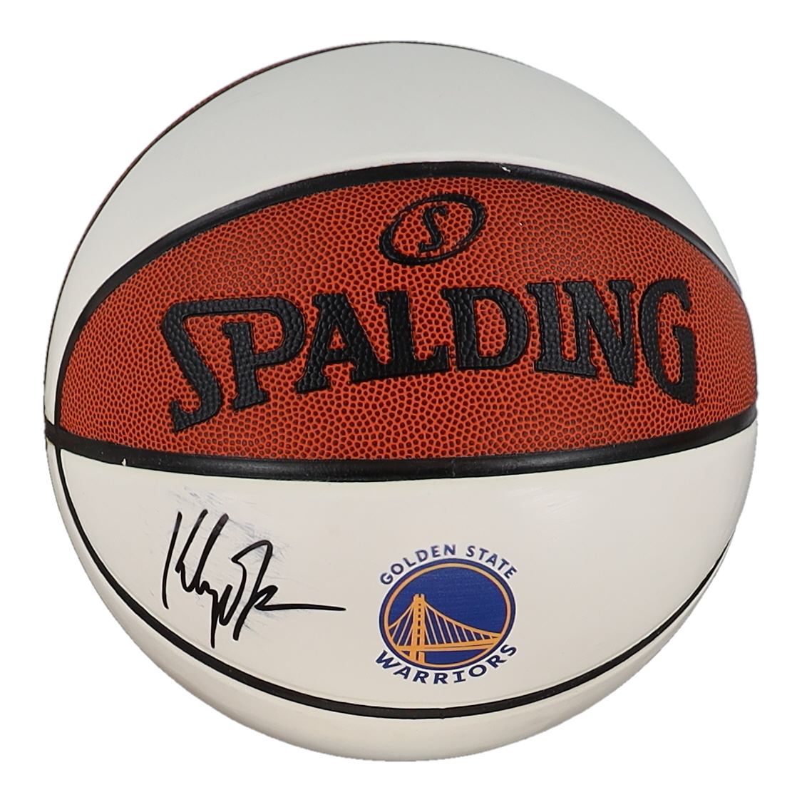 Spalding Golden State Warriors logo NBA basketball. Hand-signed by Klay Thompson. Please note, there is scuffing on the autograph.