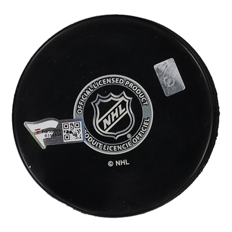 Las Vegas Golden Knights logo hockey puck has been hand-signed by William Karlsson Please note, the signature is smudged.