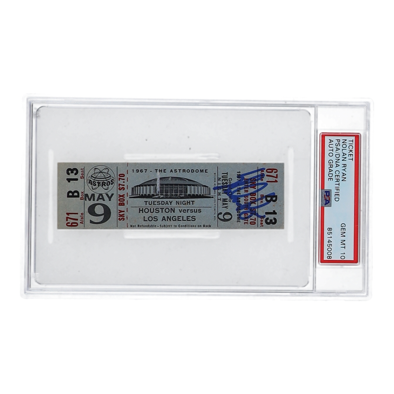 Nolan Ryan Signed 1967 Astros Astrodome Original Ticket (PSA | Auto Grade 10)