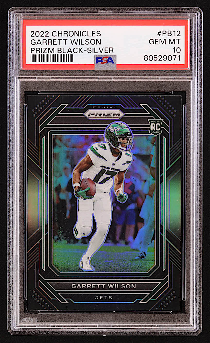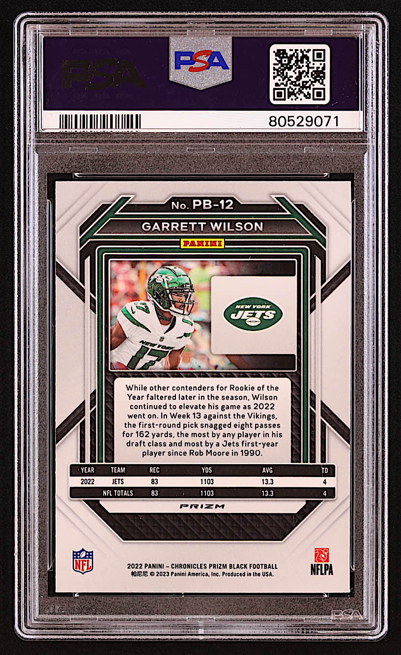 Garrett Wilson 2022 Panini Chronicles Prizm Black Silver #12 RC (PSA 10)