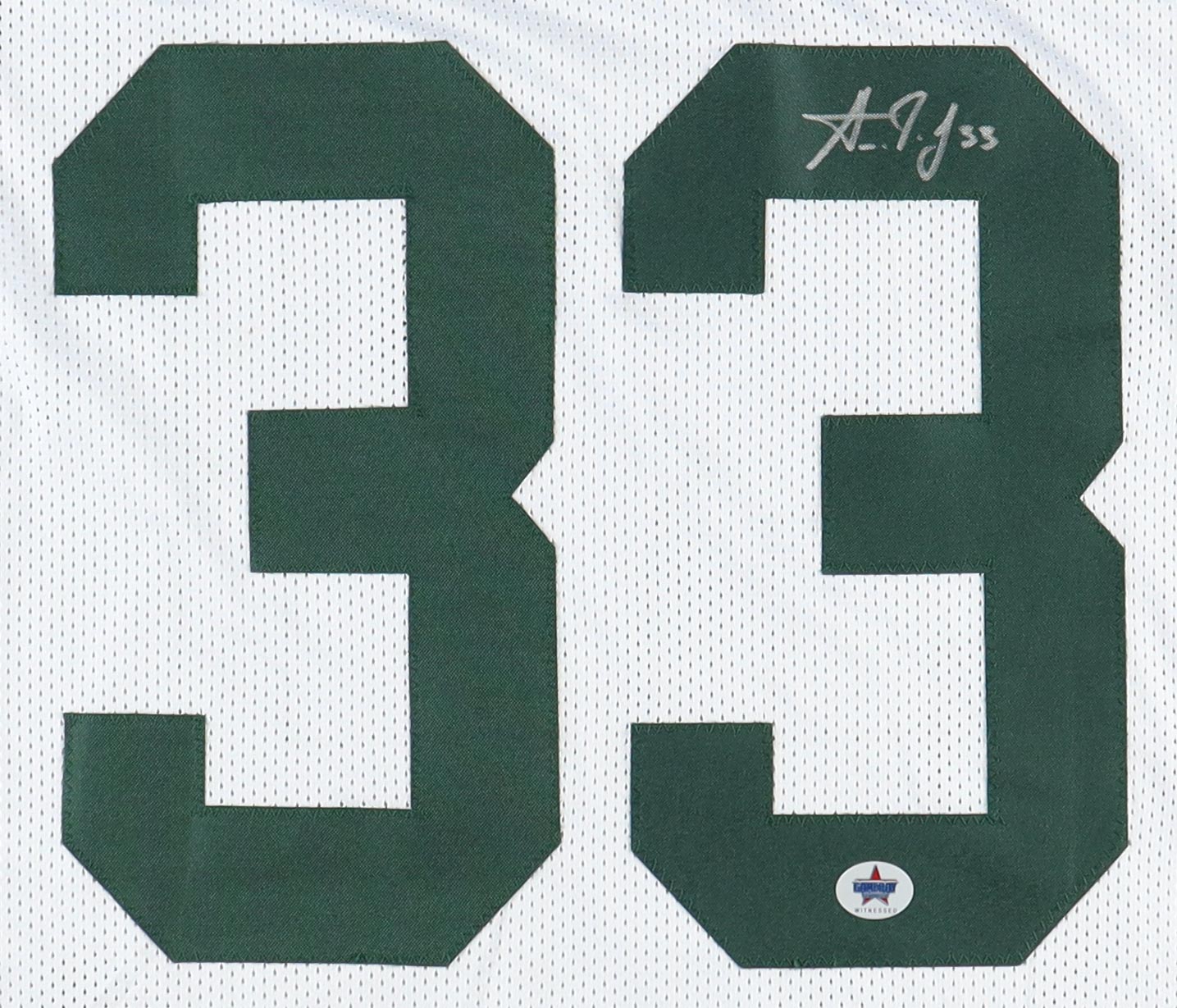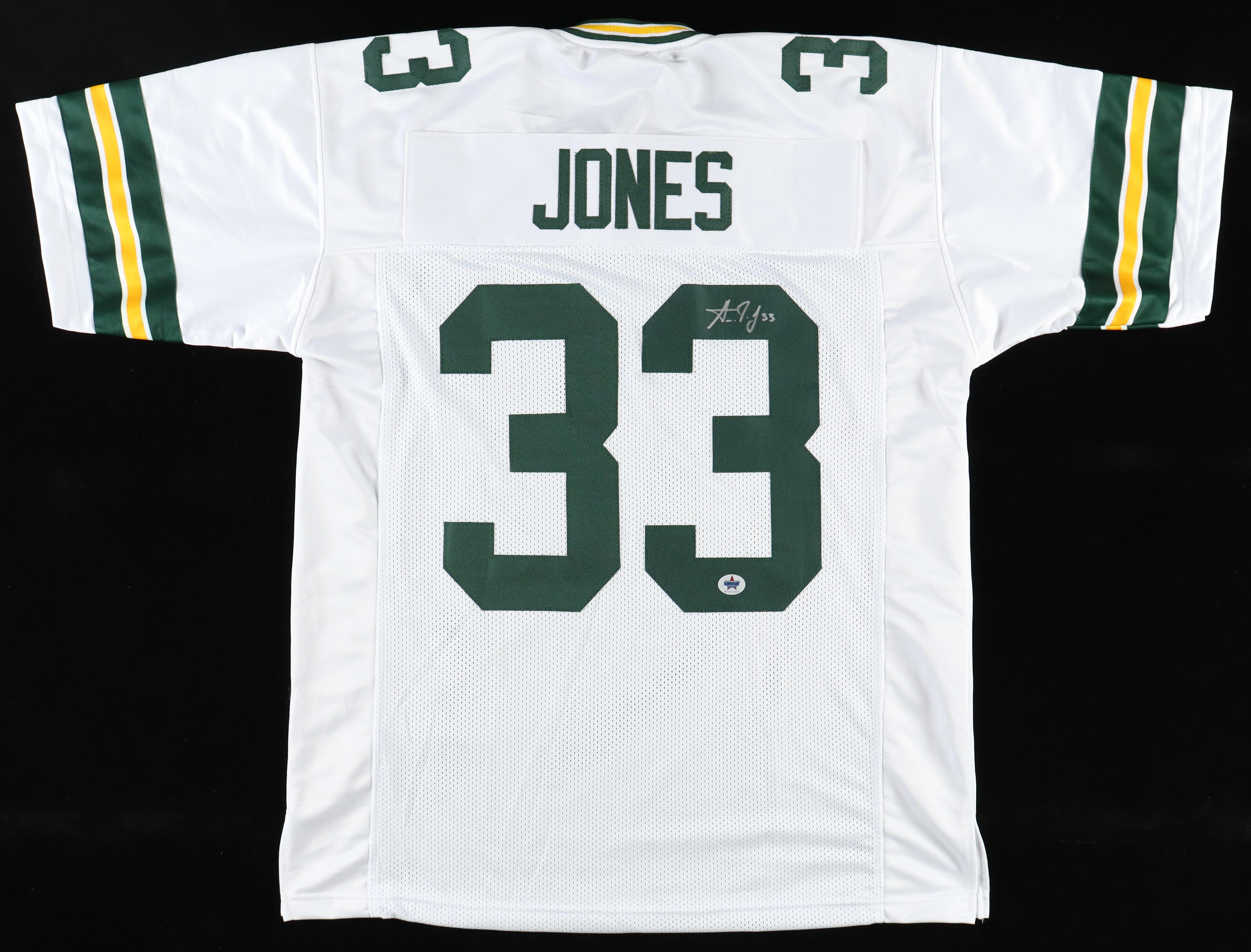 Custom jersey. Everything is sewn on, size XL. Hand-signed by Aaron Jones.