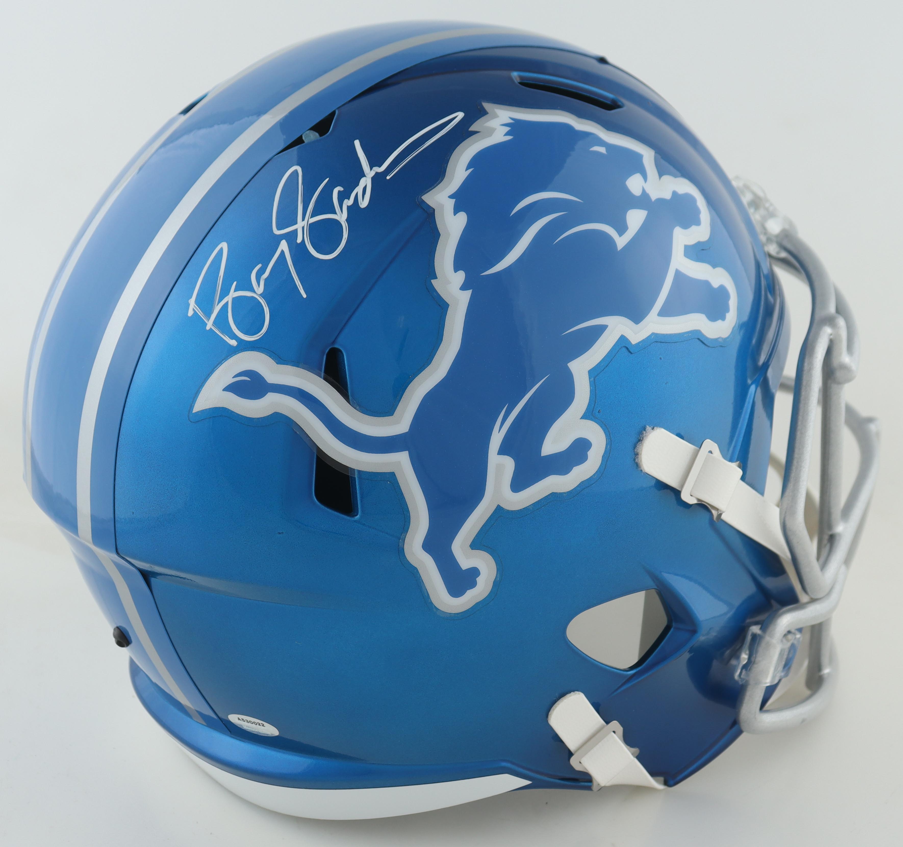 Riddell Detroit Lions full-size Flash Alternate Speed helmet. Hand-signed by Barry Sanders (HOF).