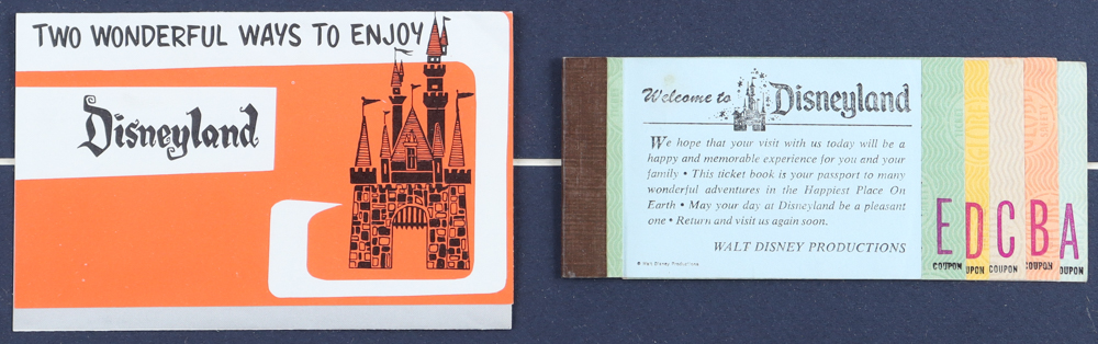 Walt Disney 1963 Disneyland Guide Custom Framed Display with Ticket Book & On-Site Pamphlet