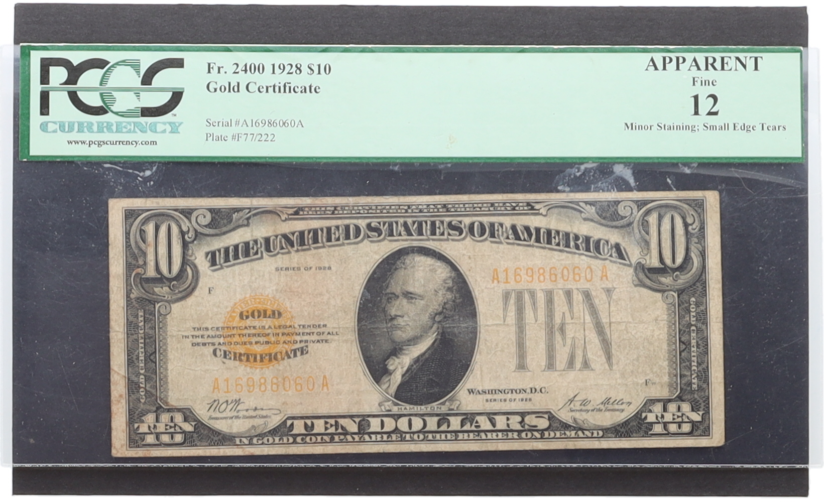 1928 $10 Ten Dollar Gold Certificate U.S. Bank Note (PCGS AF12)