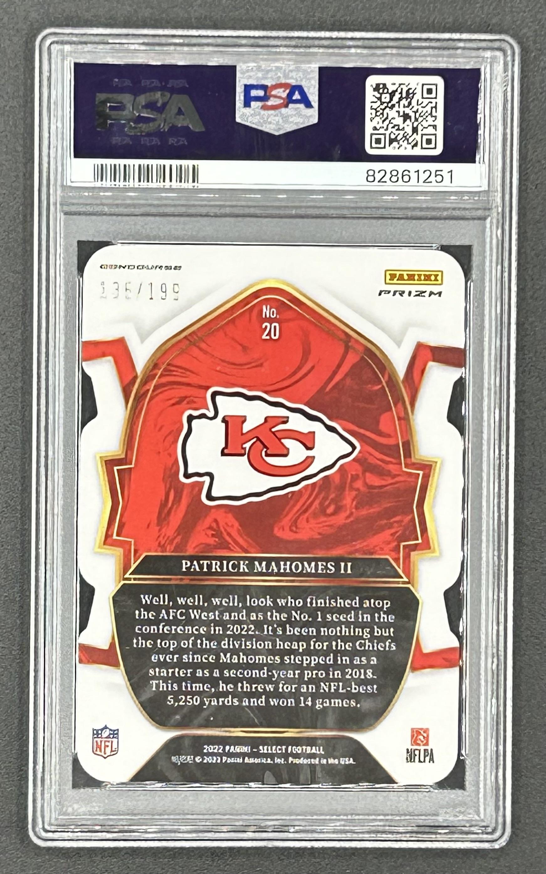 Patrick Mahomes II 2022 Select Prizm Orange Die Cut #20 #135/199 (PSA 10)