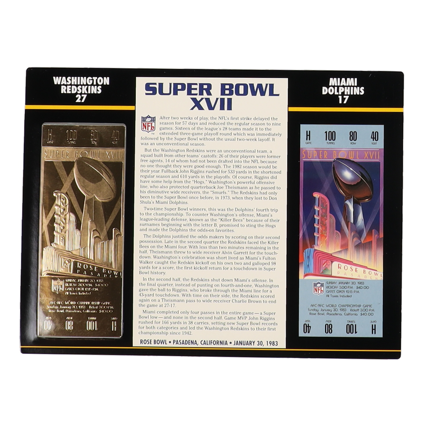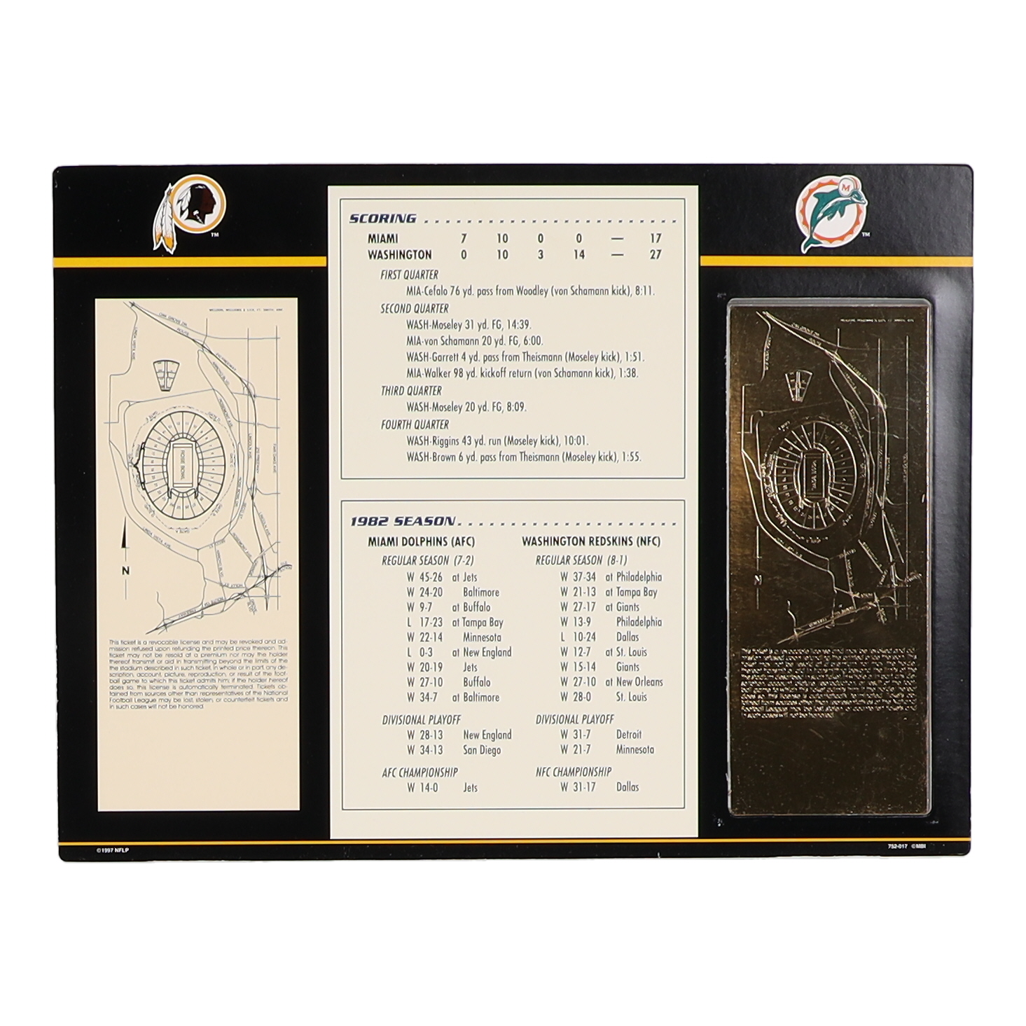 1983 Commemorative Super Bowl XVII Card with Commemorative 22 Karat Gold Ticket: Washington Redskins Super Bowl Champions