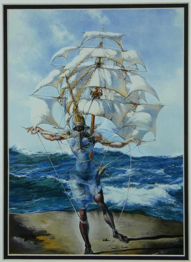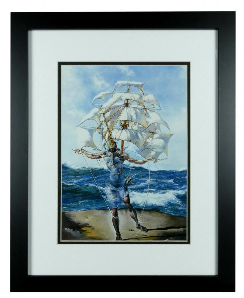 Frame measures approximately 16" x 20" in size and features an 11" x 14" print of "Costume for Tristan Insane" by Salvador Dali (D. 1989).