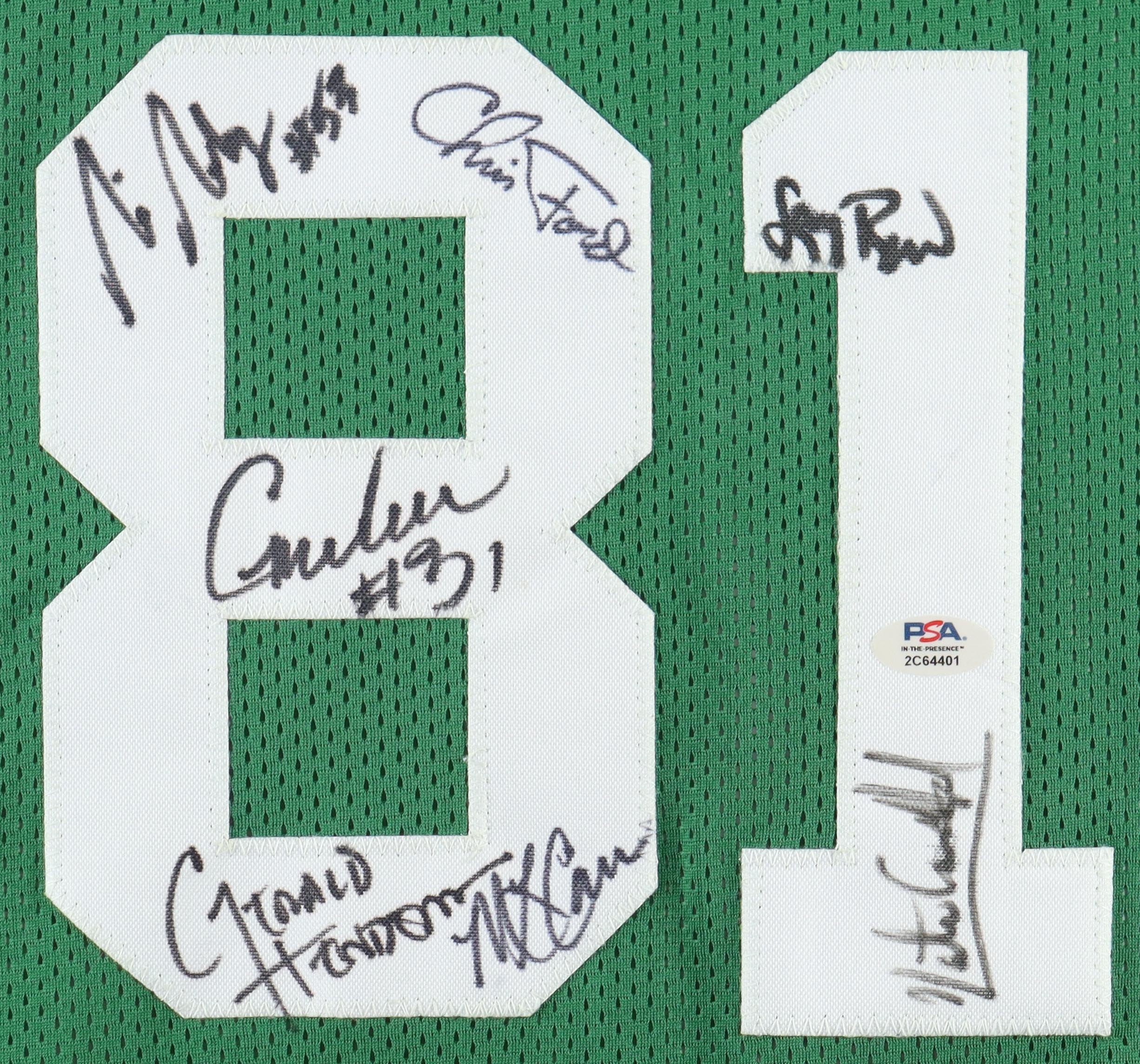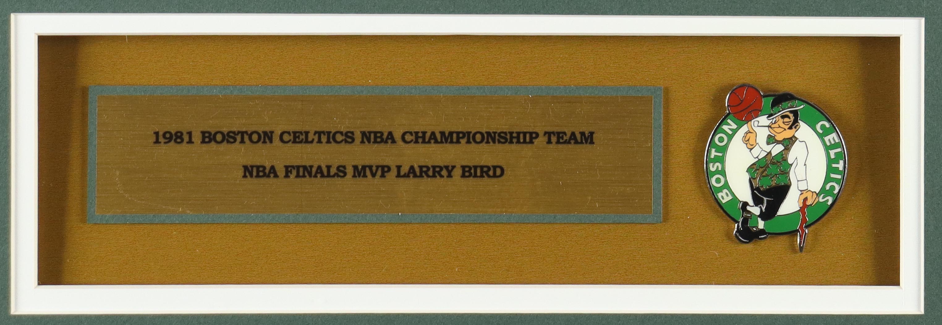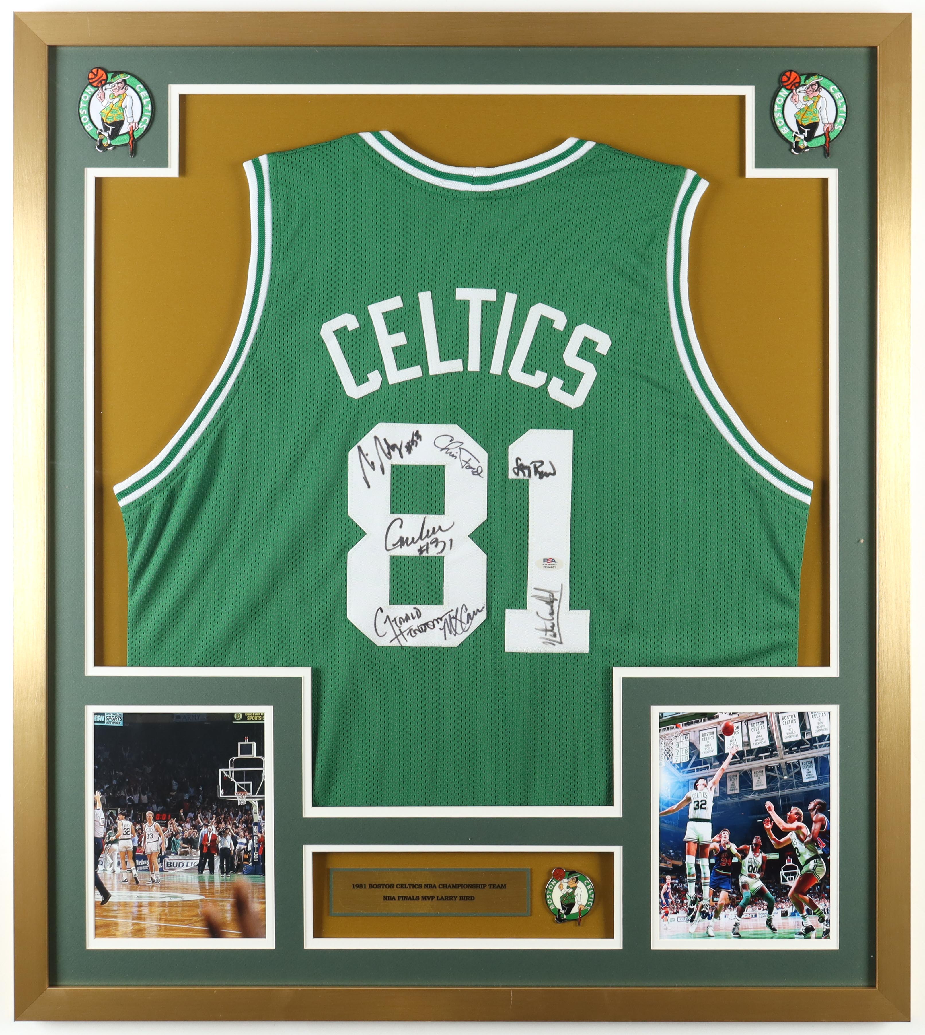1981 Celtics NBA Champions Custom Framed Jersey with Pin Signed by (7) With Larry Bird, Tiny Archibald, M.L. Carr, Chris Ford (JSA & PSA)