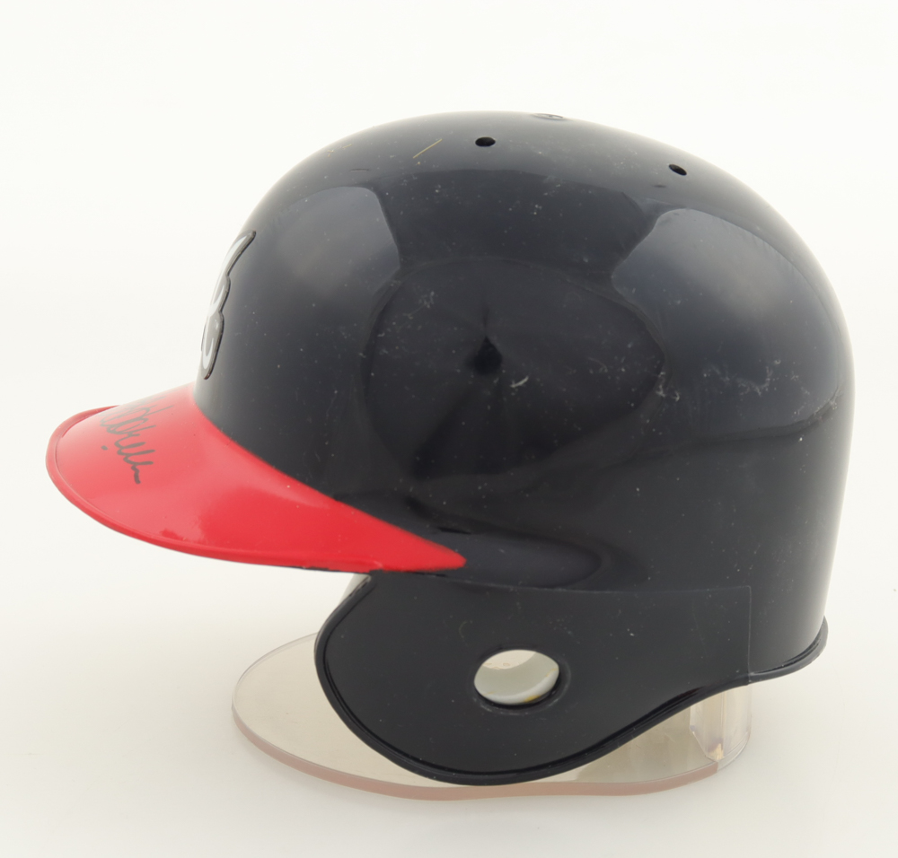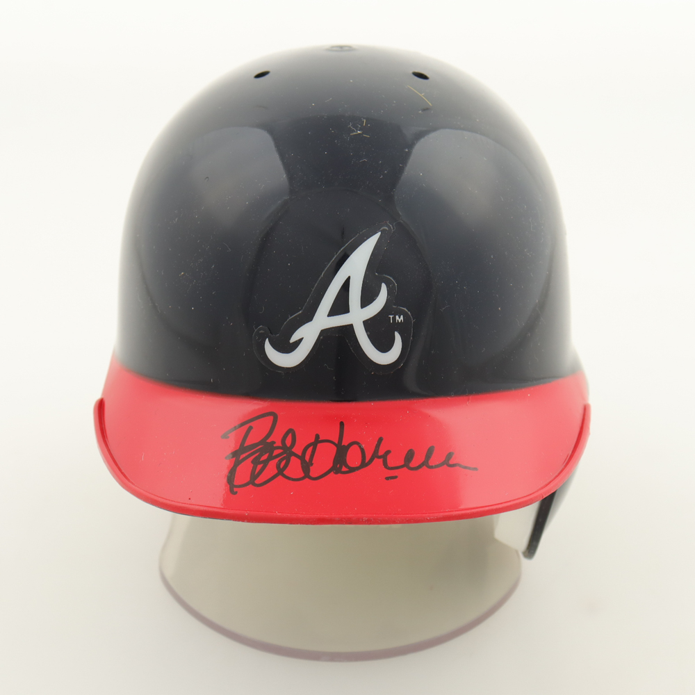 Rawlings Atlanta Braves mini batting helmet. Hand-signed by Bob Horner (D. 2020, HOF). Please note, the display stand is not included as shown.