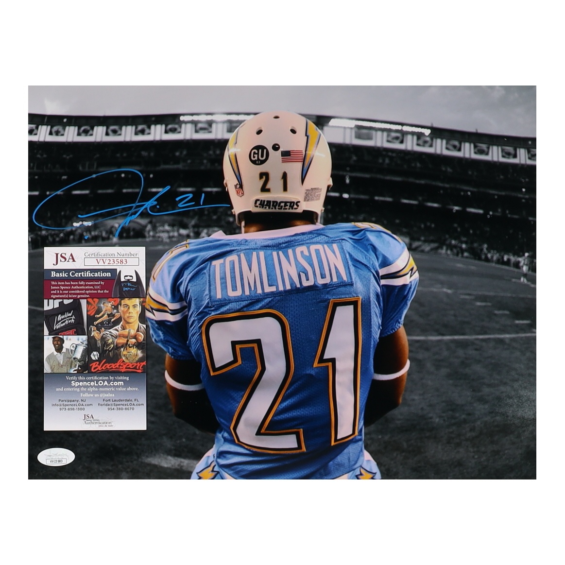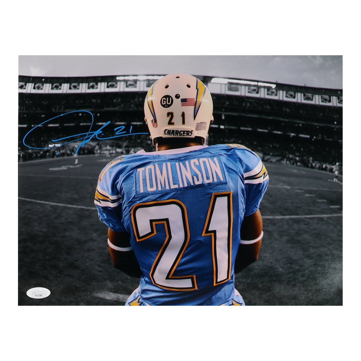 Photo measures 11" x 14" in size and has been hand-signed by LaDainian Tomlinson (San Diego Chargers, HOF).