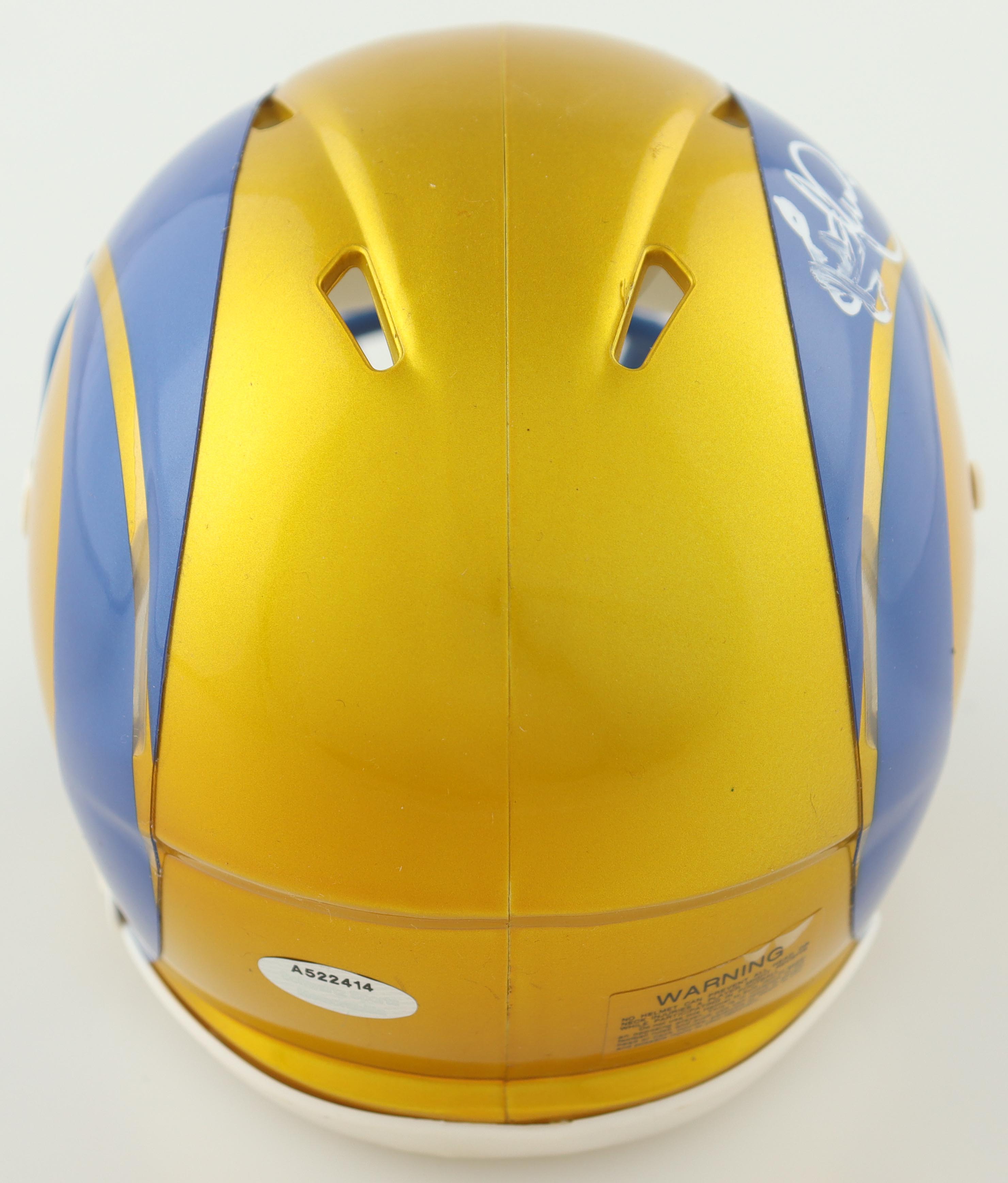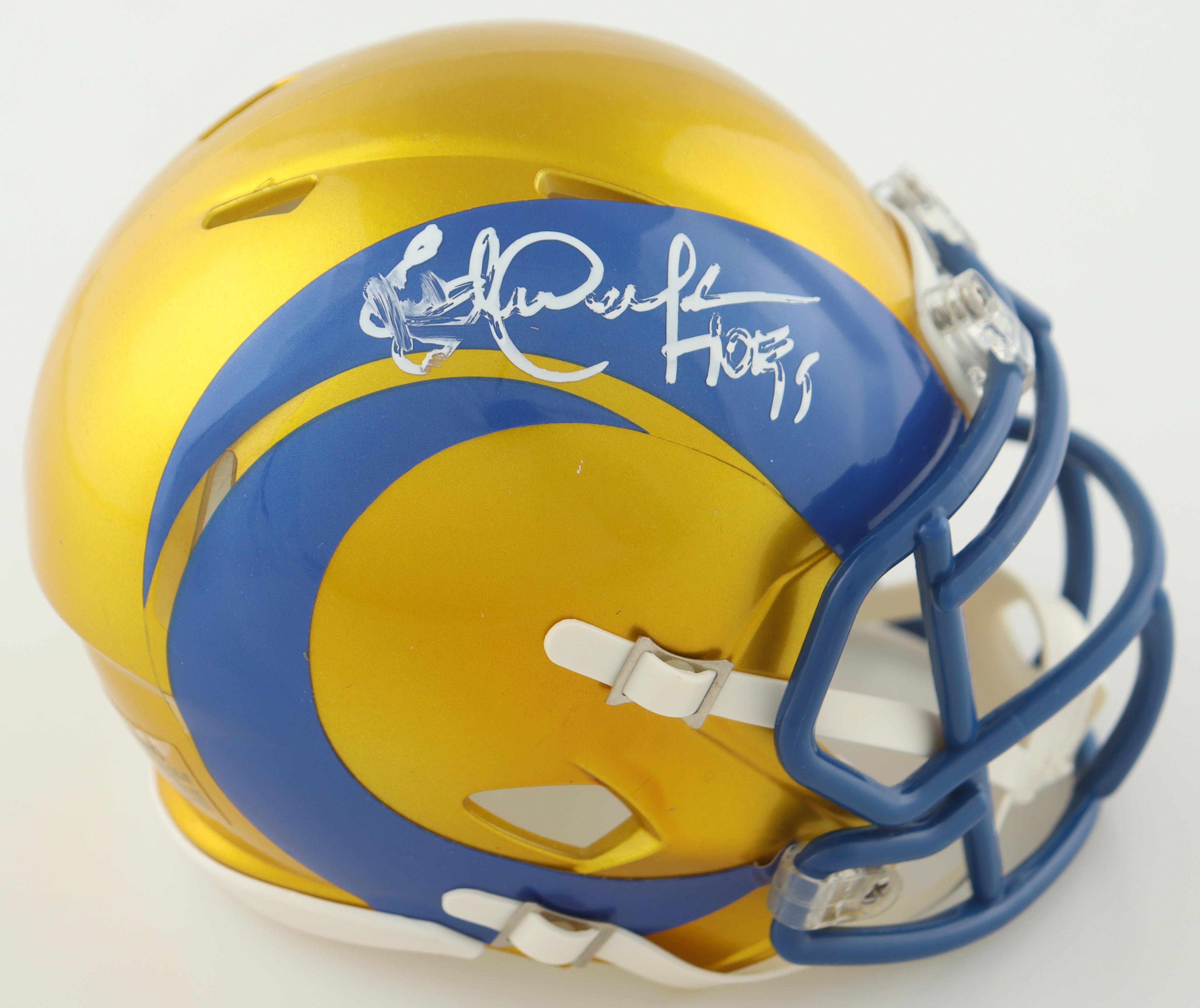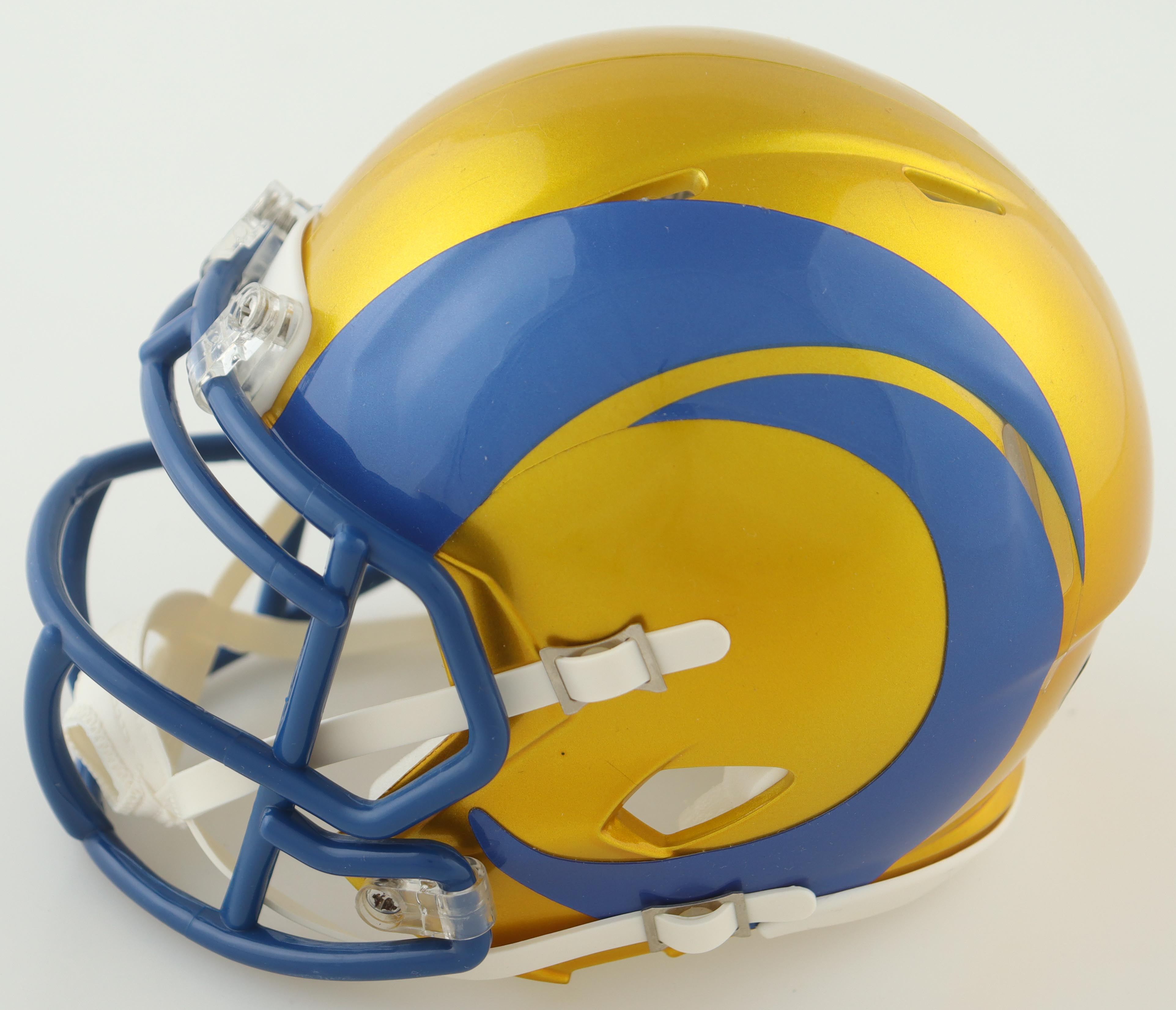 Riddell Los Angeles Rams Flash Alternate Speed mini helmet. Hand-signed and inscribed by Eric Dickerson (HOF). Please note the signature is smudged.