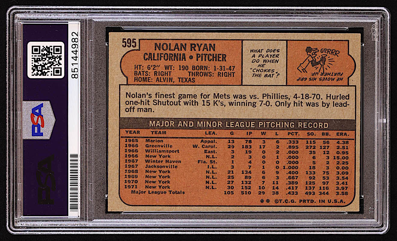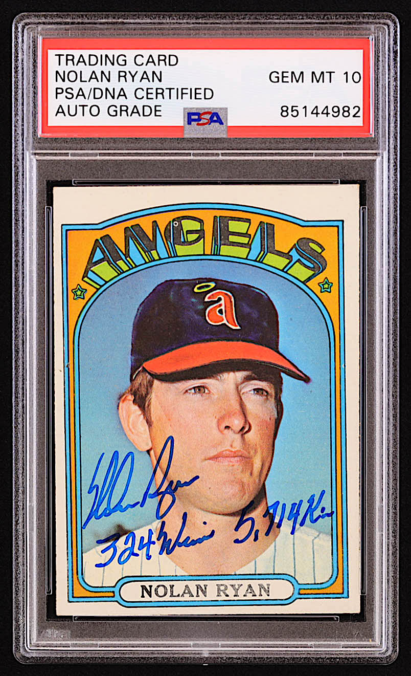 Nolan Ryan Signed 1972 Topps #595 Inscribed "324 Wins" ,"5,714 K's" (PSA | Autograph Graded PSA 10)