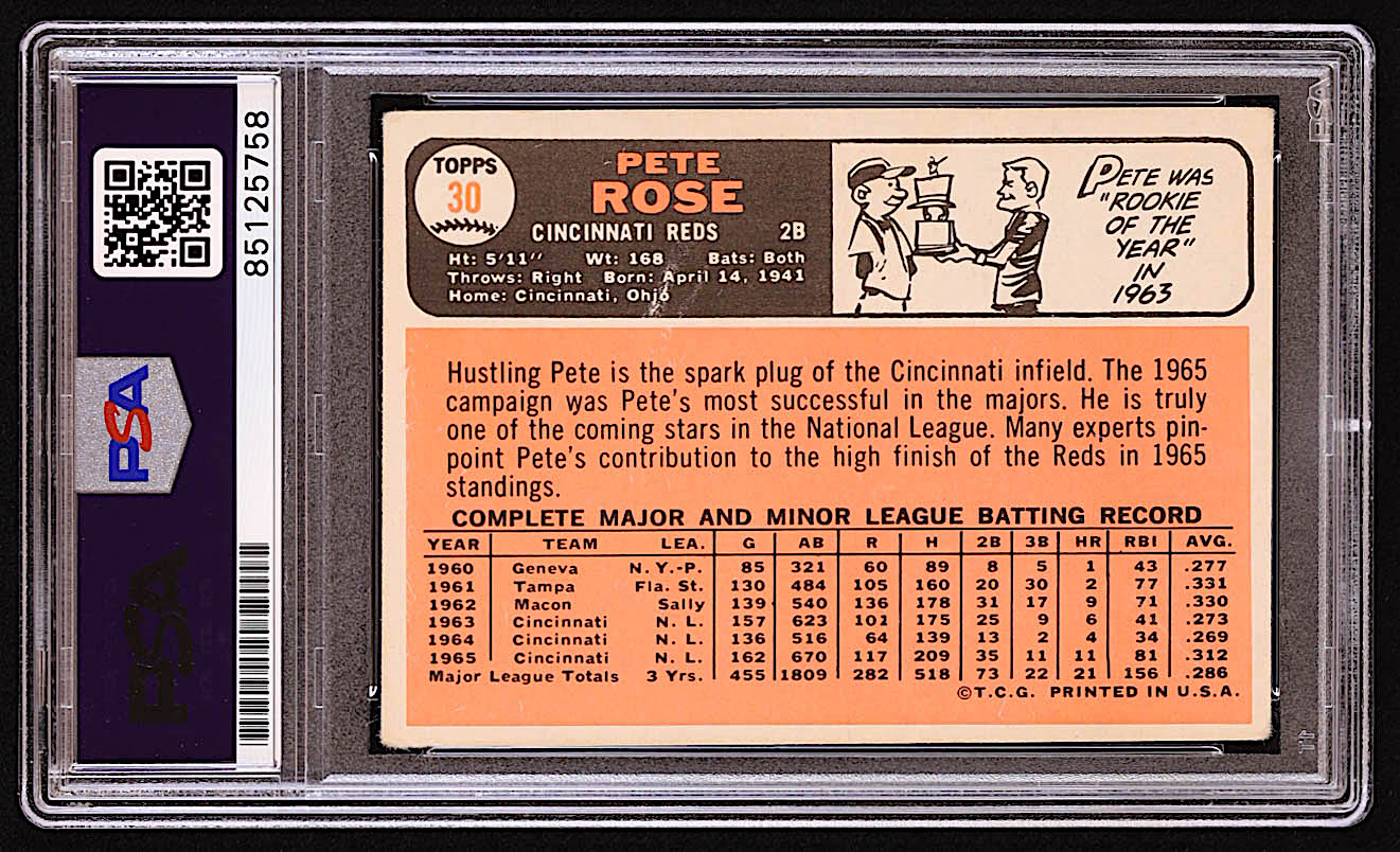 Pete Rose Signed 1966 Topps #30 DP Inscribed "1963 ROY" & "1973 NL MVP" (PSA | Autograph Graded PSA 10)