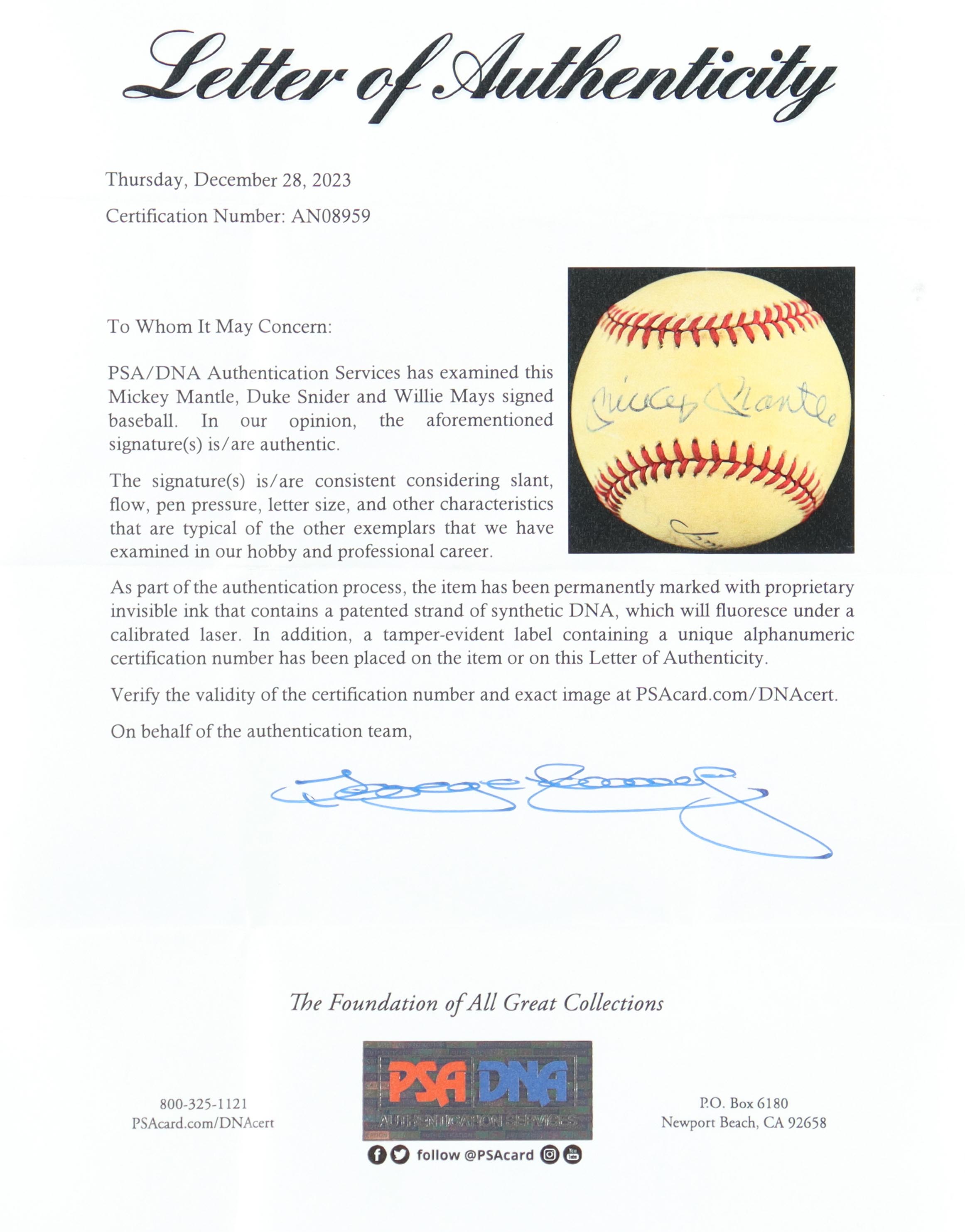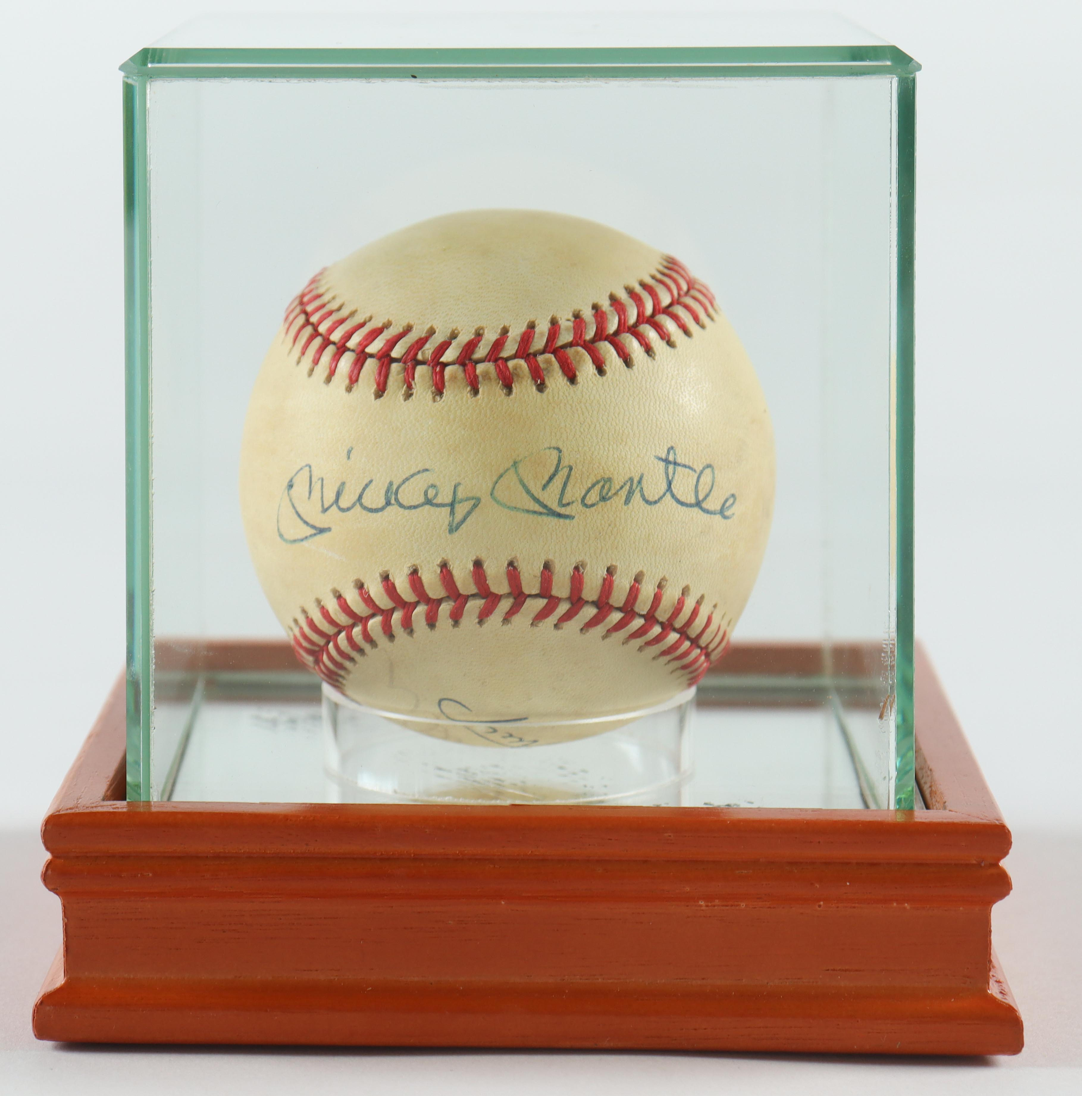 Rawlings Official National League Baseball. Hand-signed by Duke Snider (D. 2011, HOF), Mickey Mantle (D. 1995, HOF) & Willie Mays (HOF). Display case included as as shown. Please note, Snider's signature has faded and baseball is naturally toned. Refer to photos for more details on the condition of the item.
