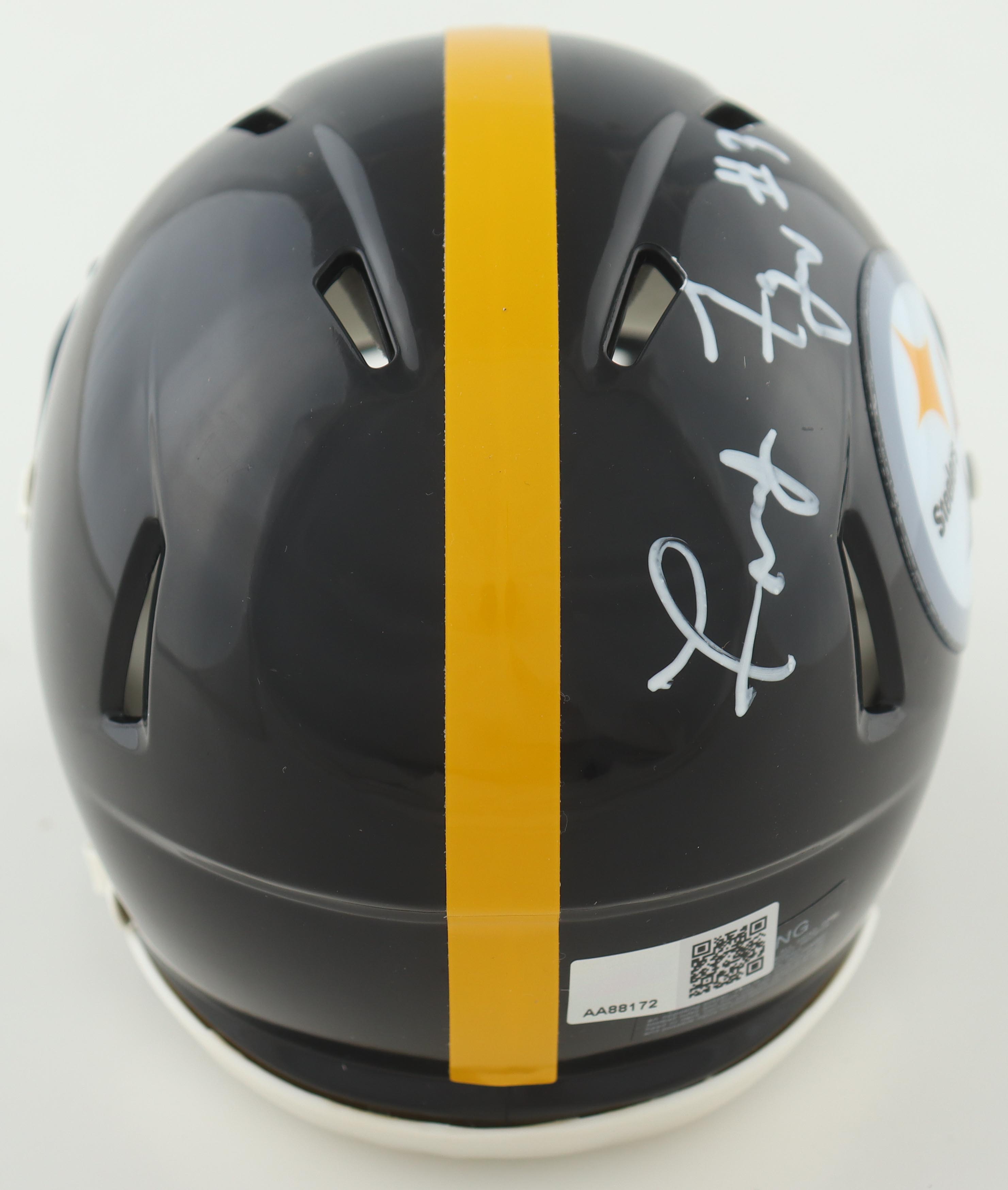 Riddell Pittsburgh Steelers Speed mini helmet. Hand-signed by John Fuqua.
