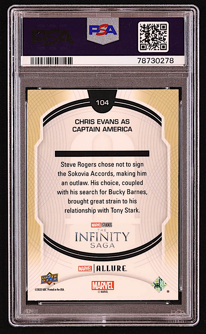 Chris Evans as Captain America 2022 Upper Deck Marvel Studios Allure #104 SP (PSA 9)